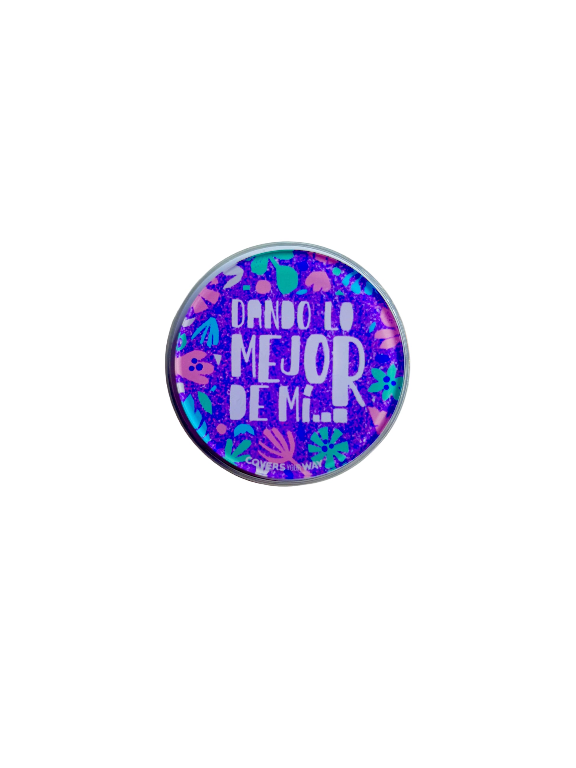 This Magnetic Phone Grip features an exclusive design with the phrase "Dando lo mejor de mí...", blending inspiration and functionality. Compatible with magnetic phone cases and MagSafe, it provides a comfortable, secure grip and also works as a stand for your phone.