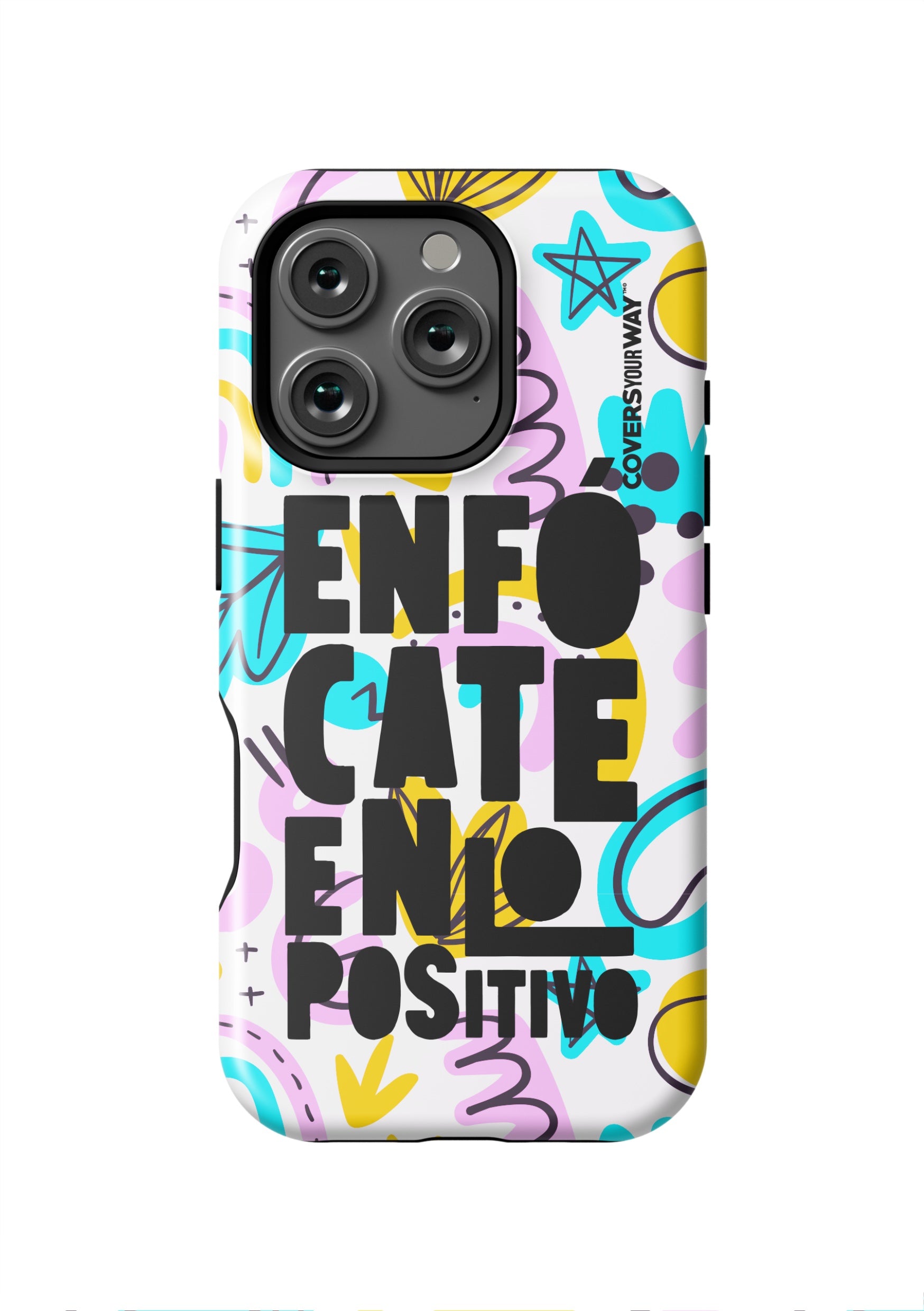 Give your phone a unique touch with this exclusive case that blends protection and a positive mindset. Featuring the phrase “Enfócate en lo positivo” in a modern, uplifting design, it’s perfect for those who choose to see the best in each day while keeping their device safe.