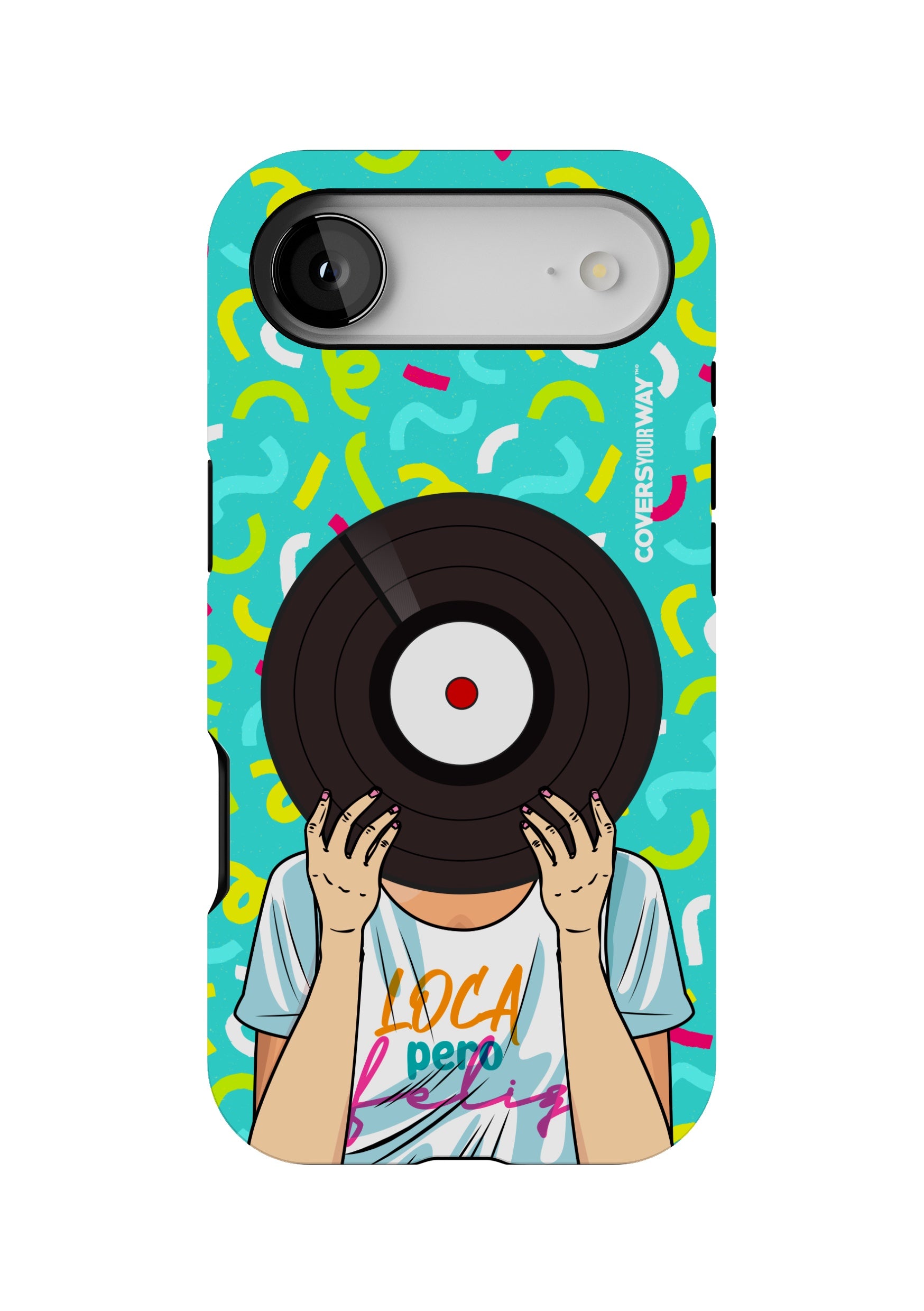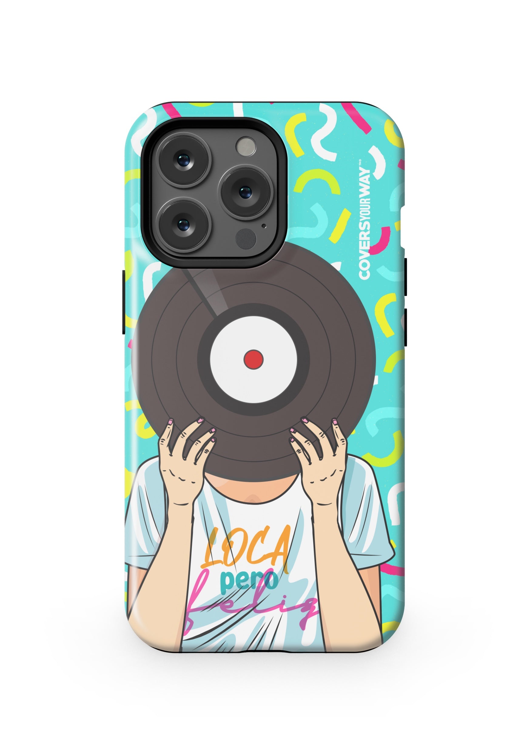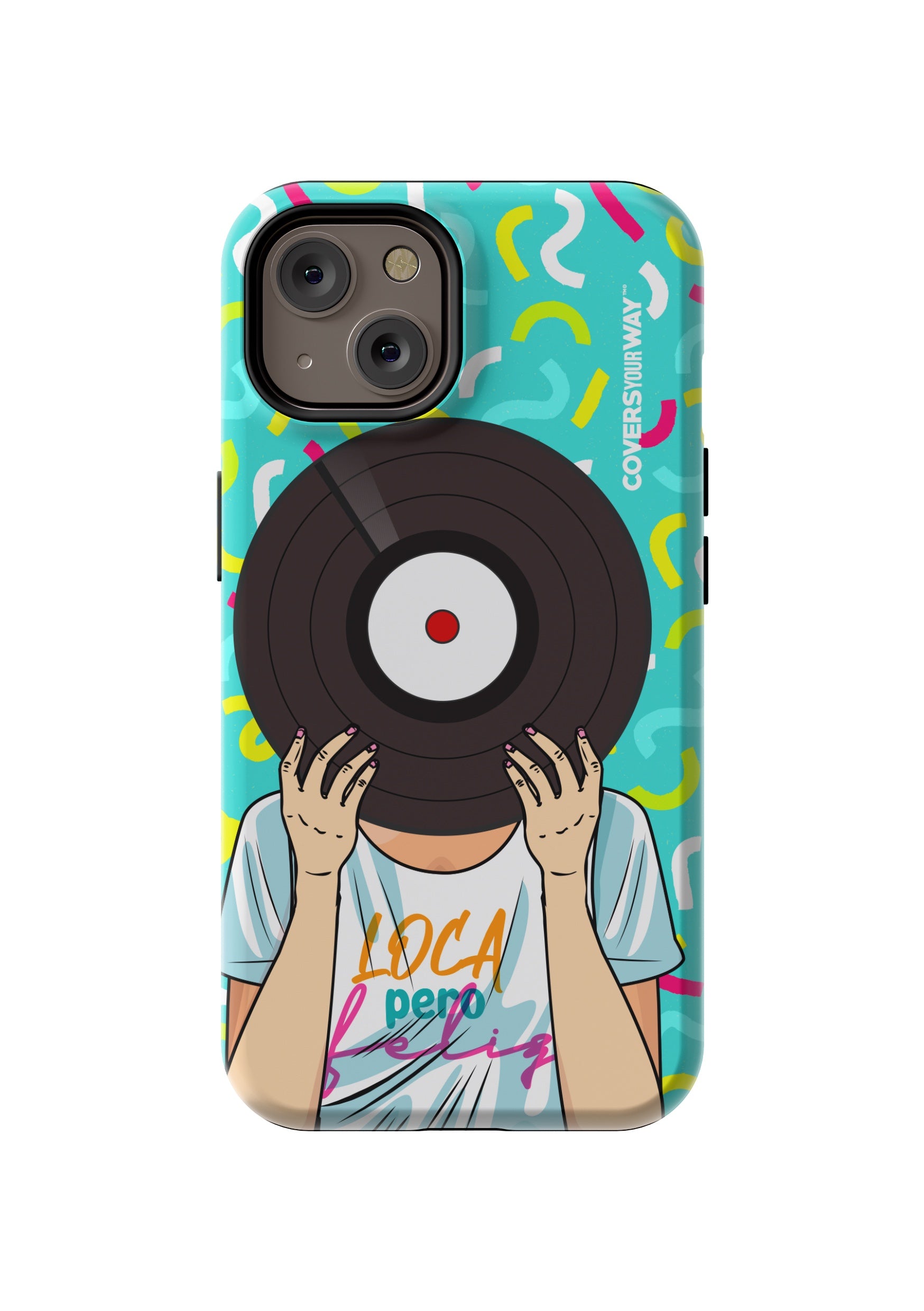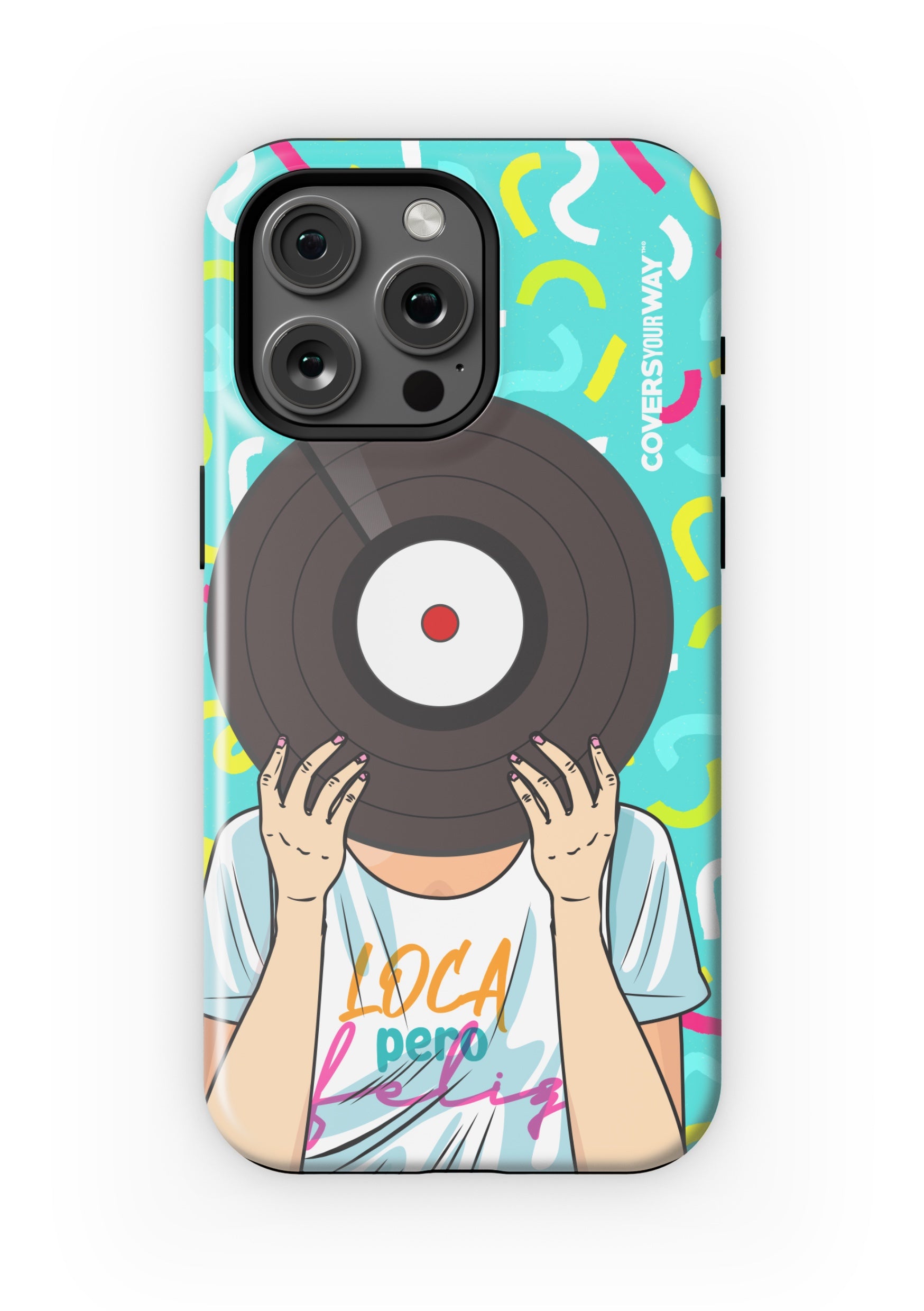 Exclusive phone case full of personality and vibrant style. It features the phrase "Loca pero feliz" in fun typography over a colorful, eye-catching background—perfect for those who live joyfully and unapologetically. Provides reliable protection against bumps and scratches.