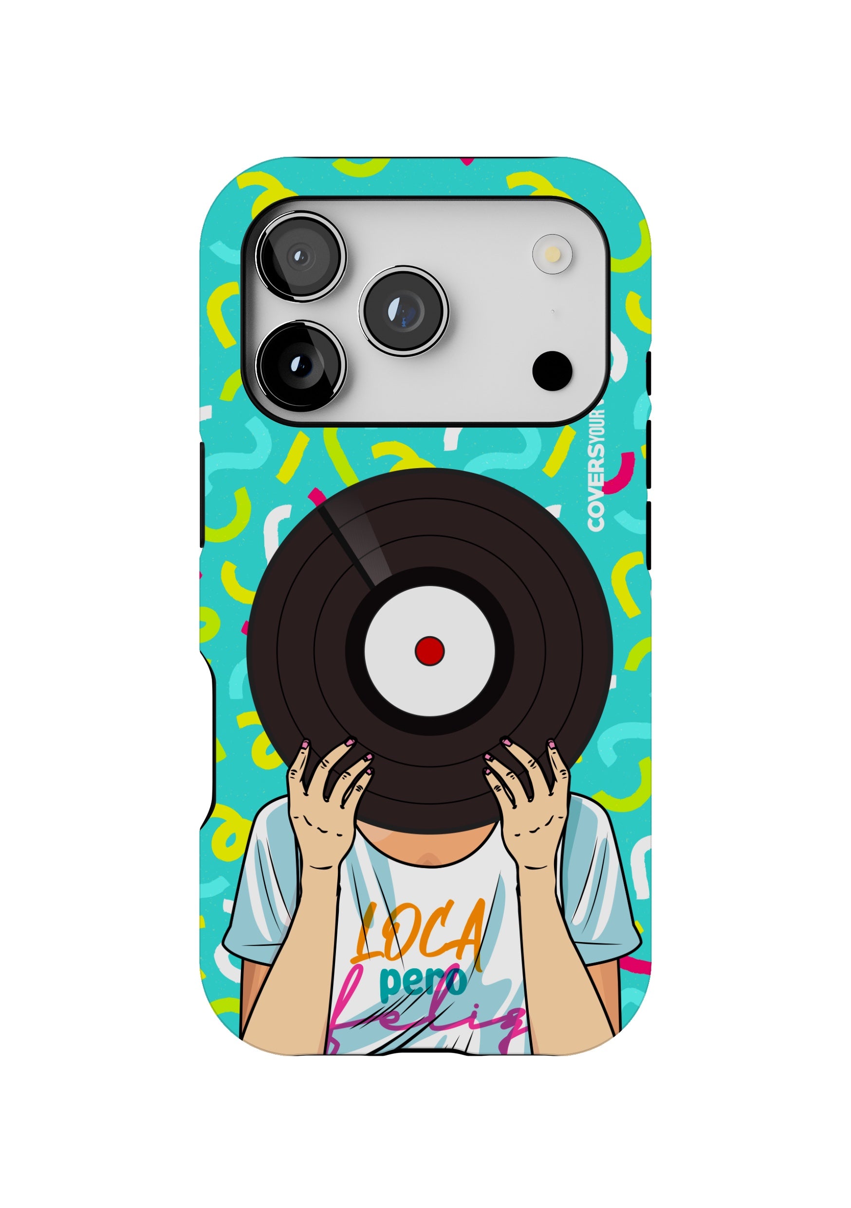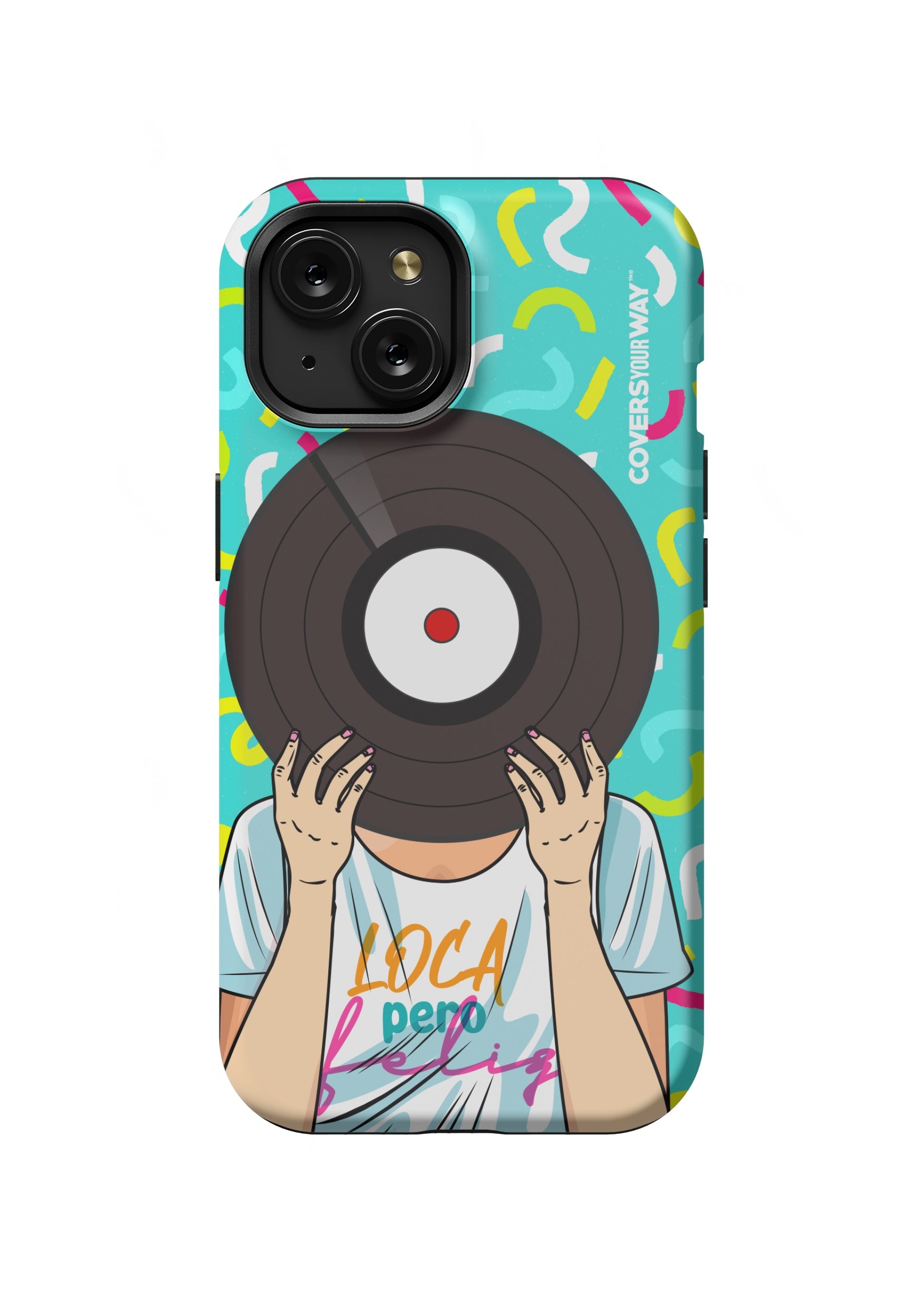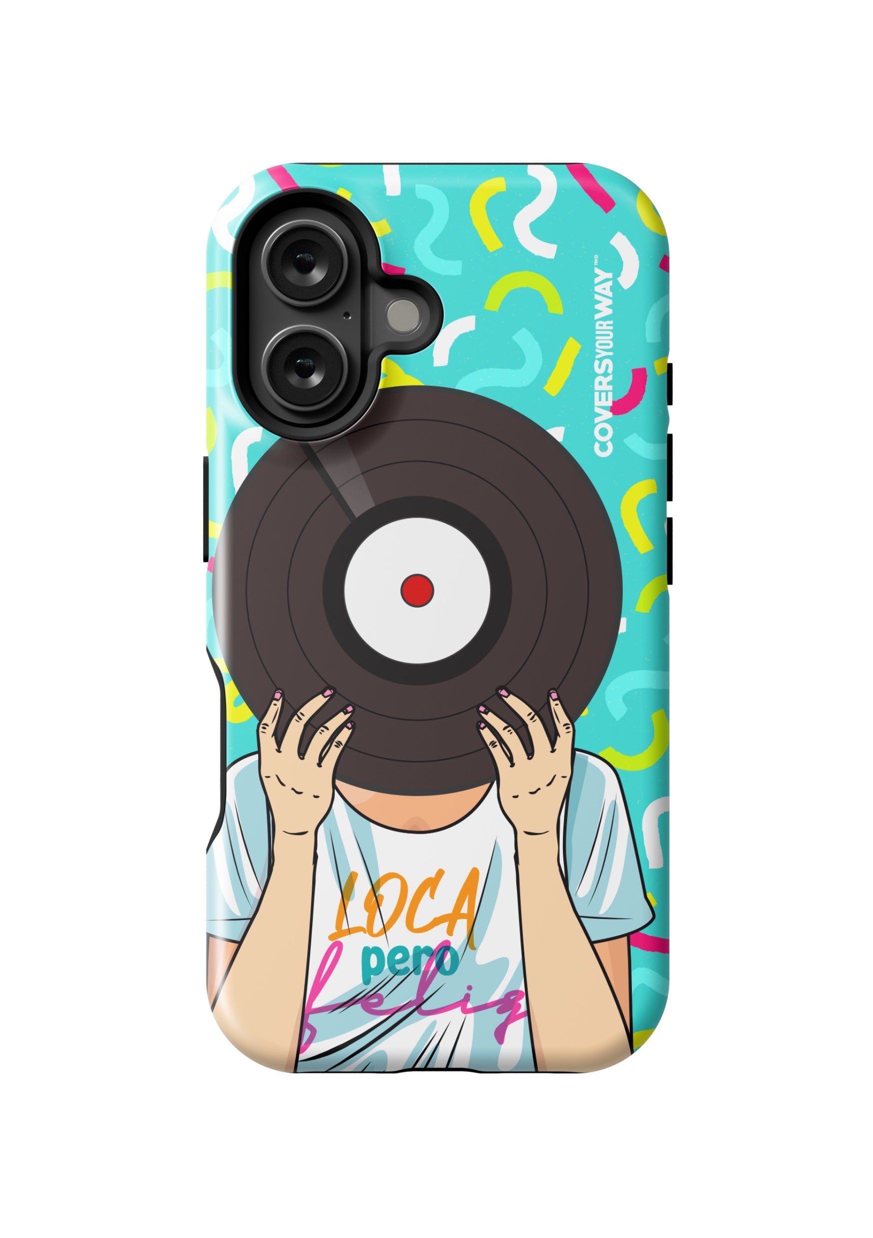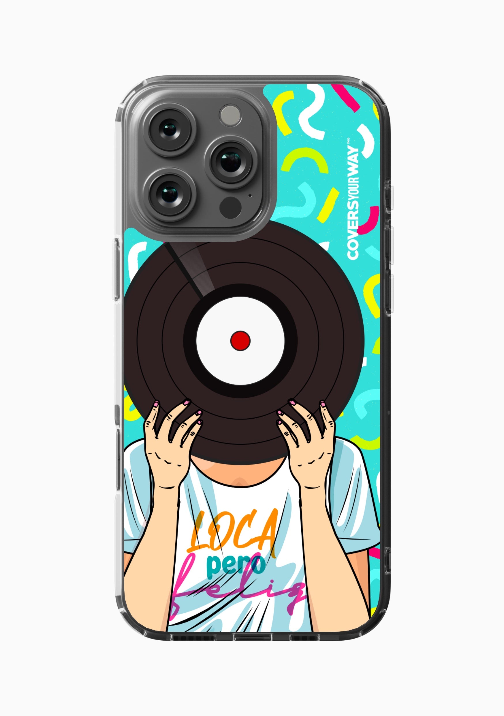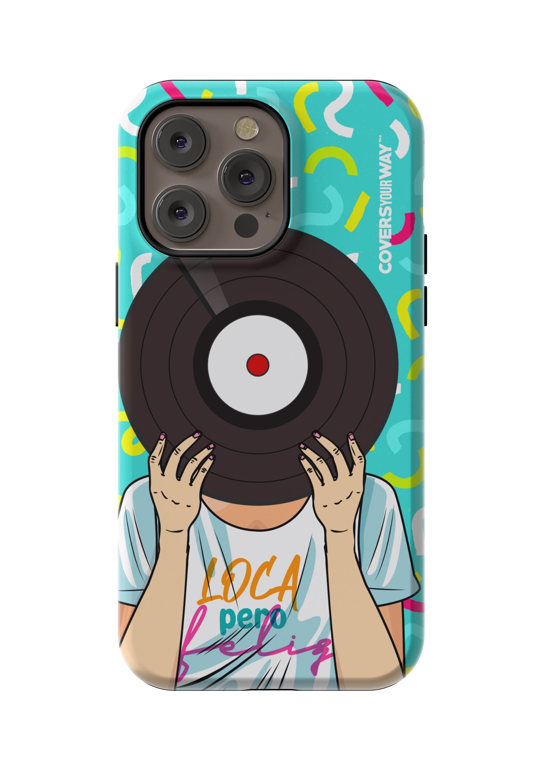 Exclusive phone case full of personality and vibrant style. It features the phrase "Loca pero feliz" in fun typography over a colorful, eye-catching background—perfect for those who live joyfully and unapologetically. Provides reliable protection against bumps and scratches.