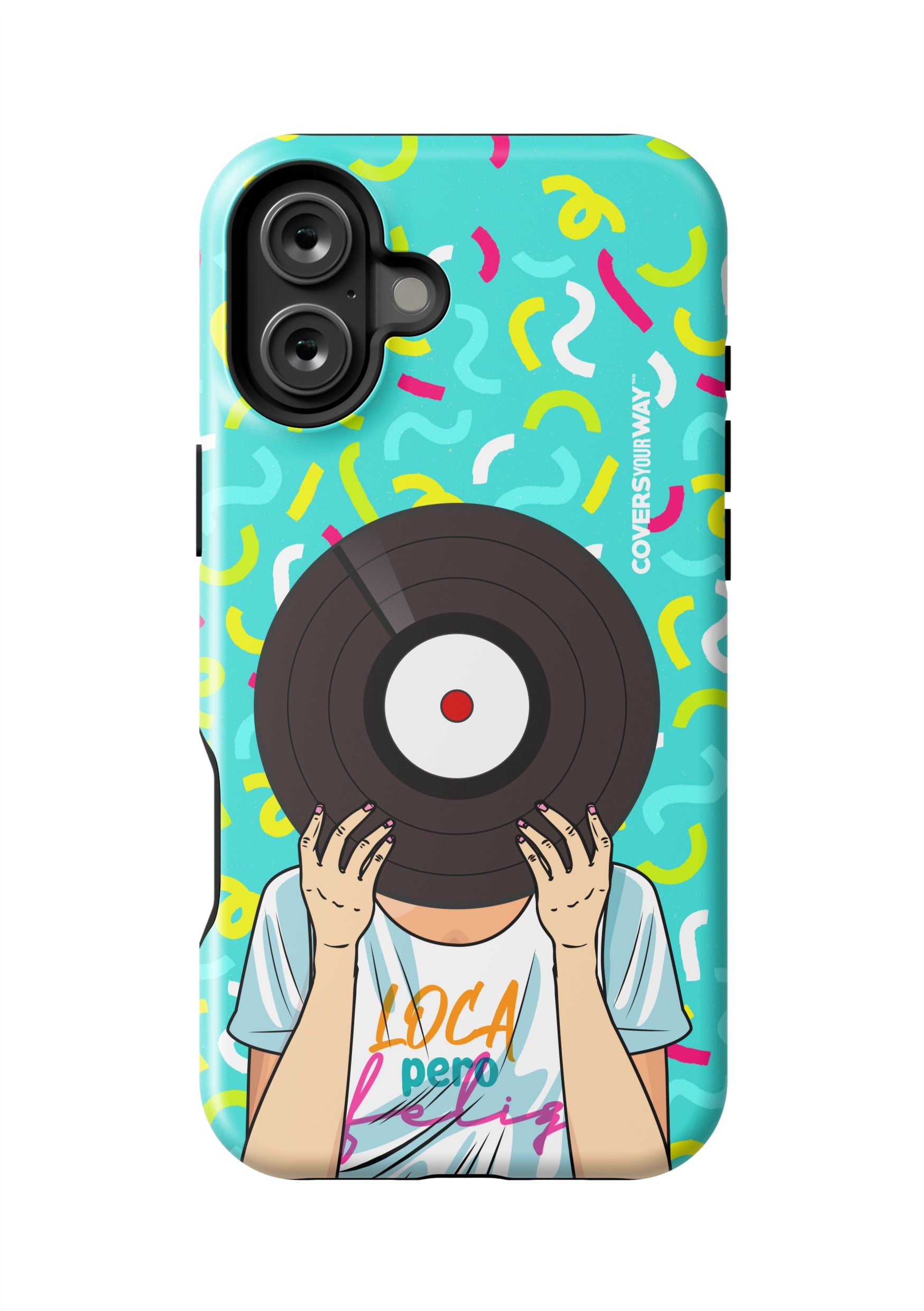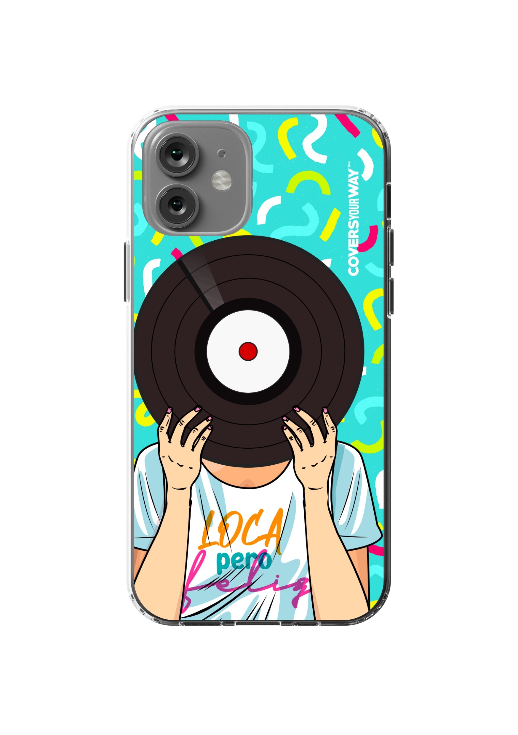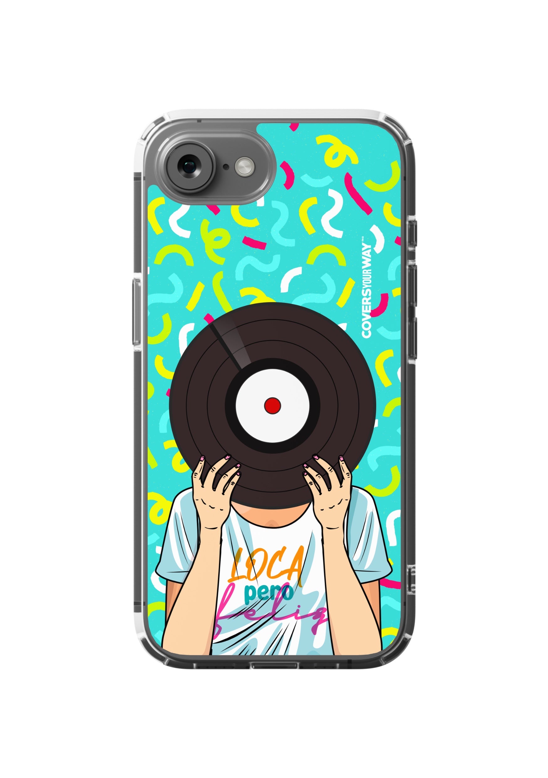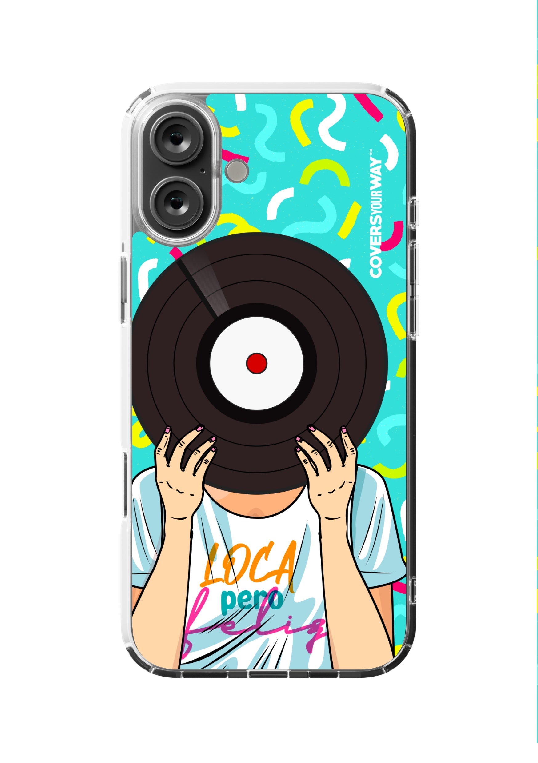 Exclusive phone case full of personality and vibrant style. It features the phrase "Loca pero feliz" in fun typography over a colorful, eye-catching background—perfect for those who live joyfully and unapologetically. Provides reliable protection against bumps and scratches.