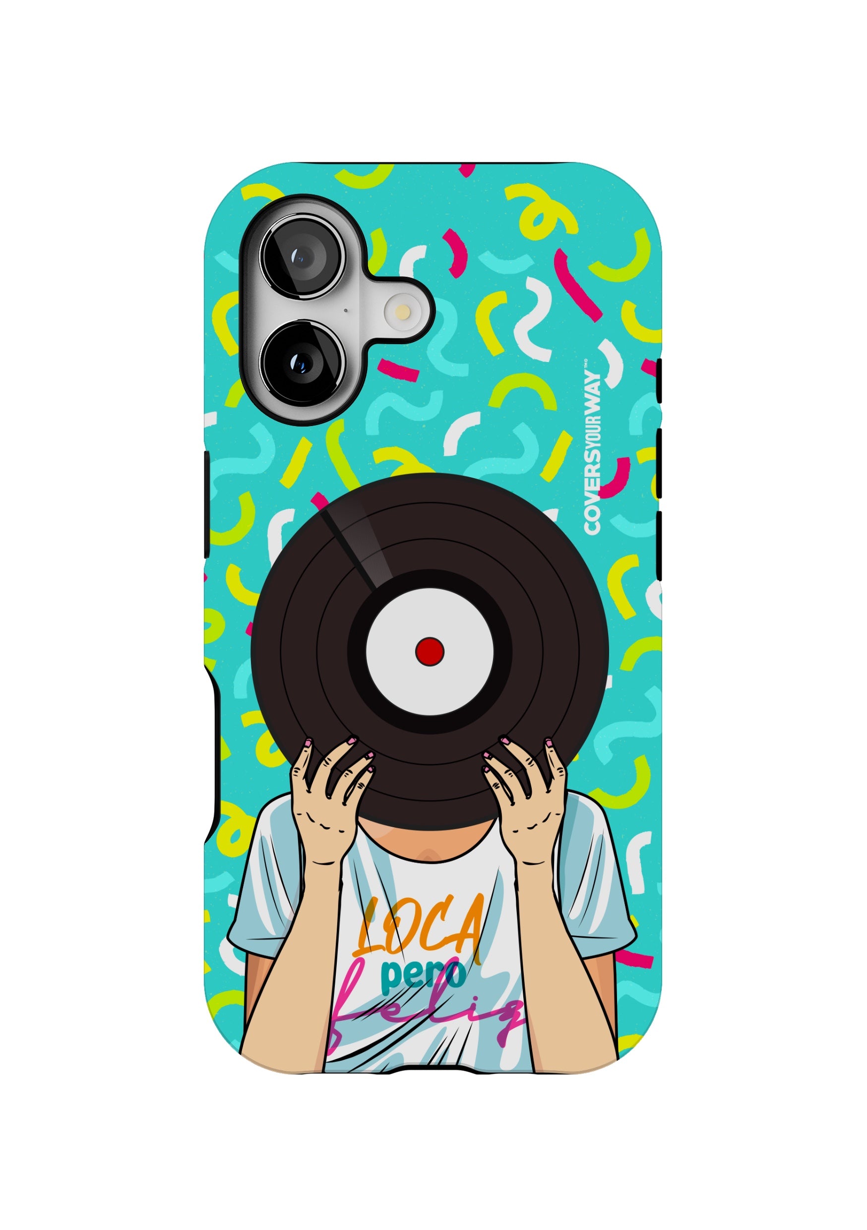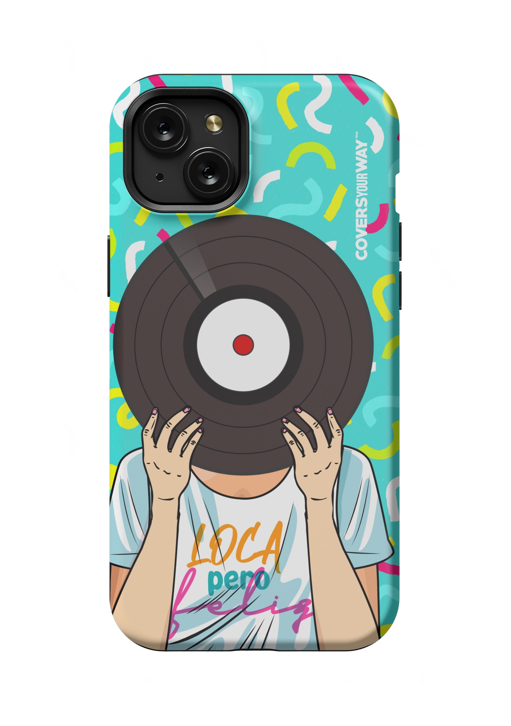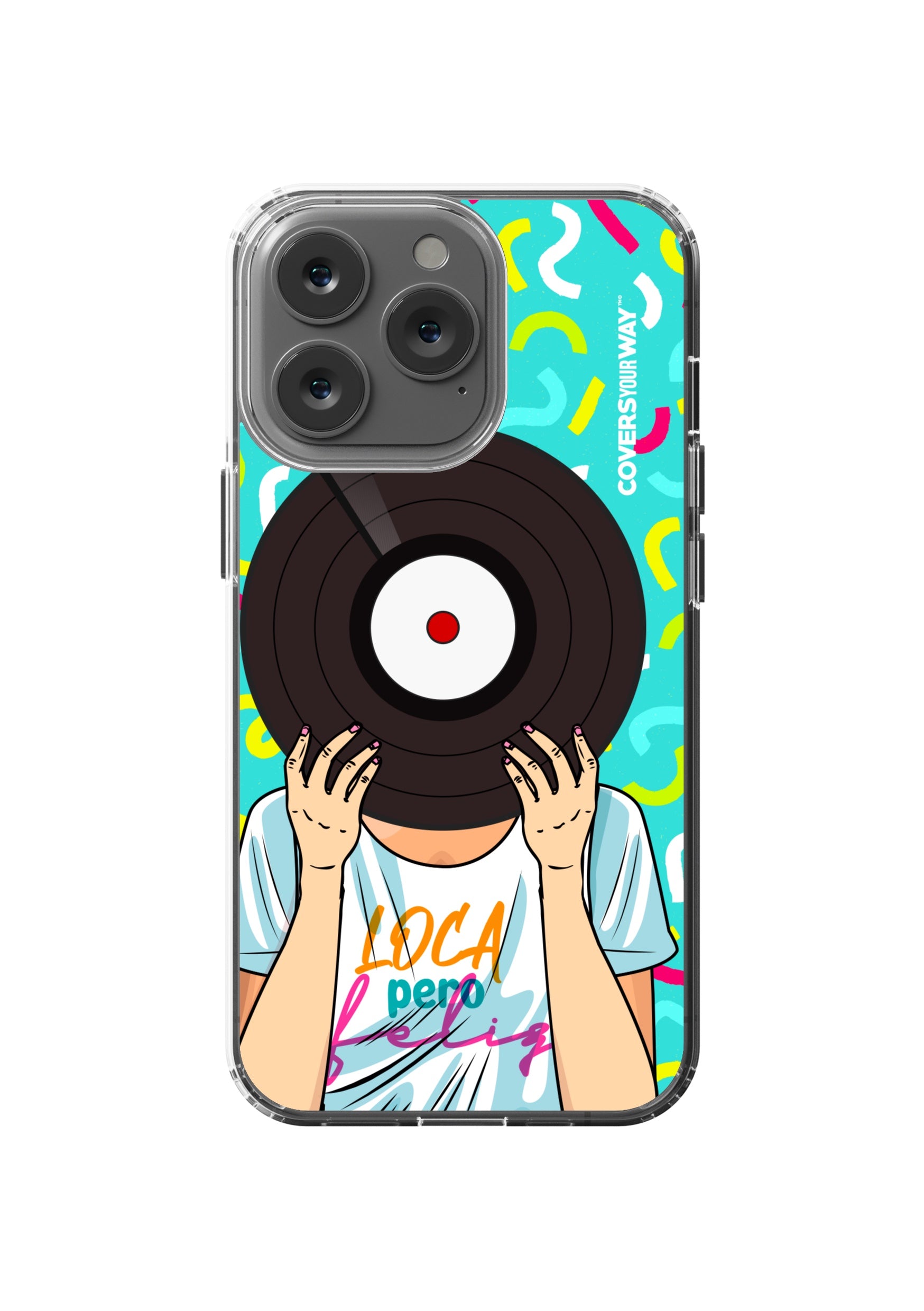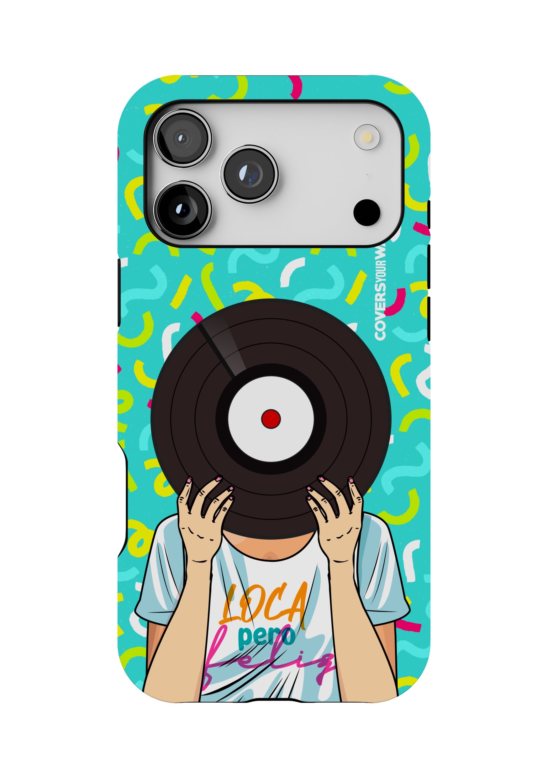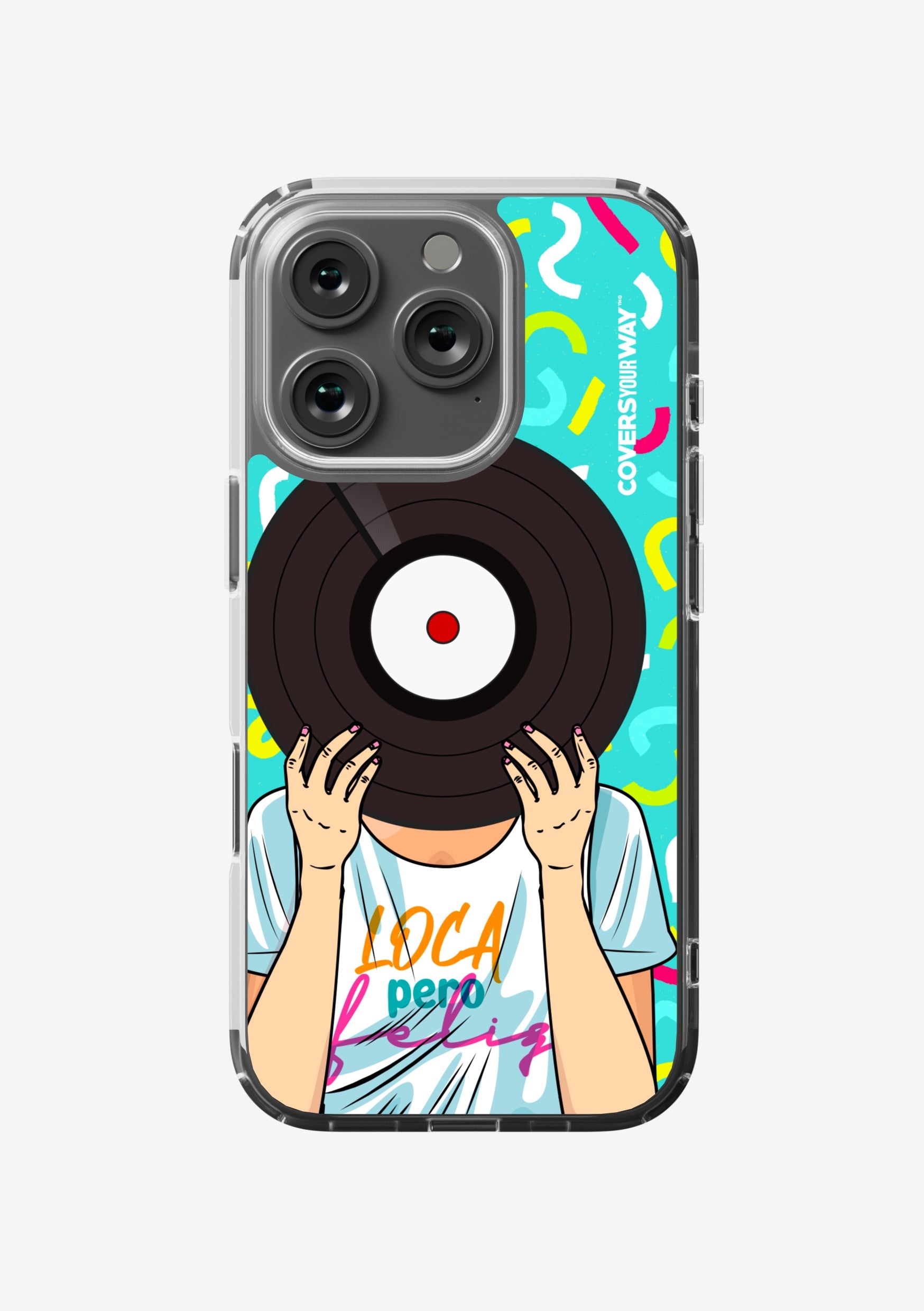 Exclusive phone case full of personality and vibrant style. It features the phrase "Loca pero feliz" in fun typography over a colorful, eye-catching background—perfect for those who live joyfully and unapologetically. Provides reliable protection against bumps and scratches.