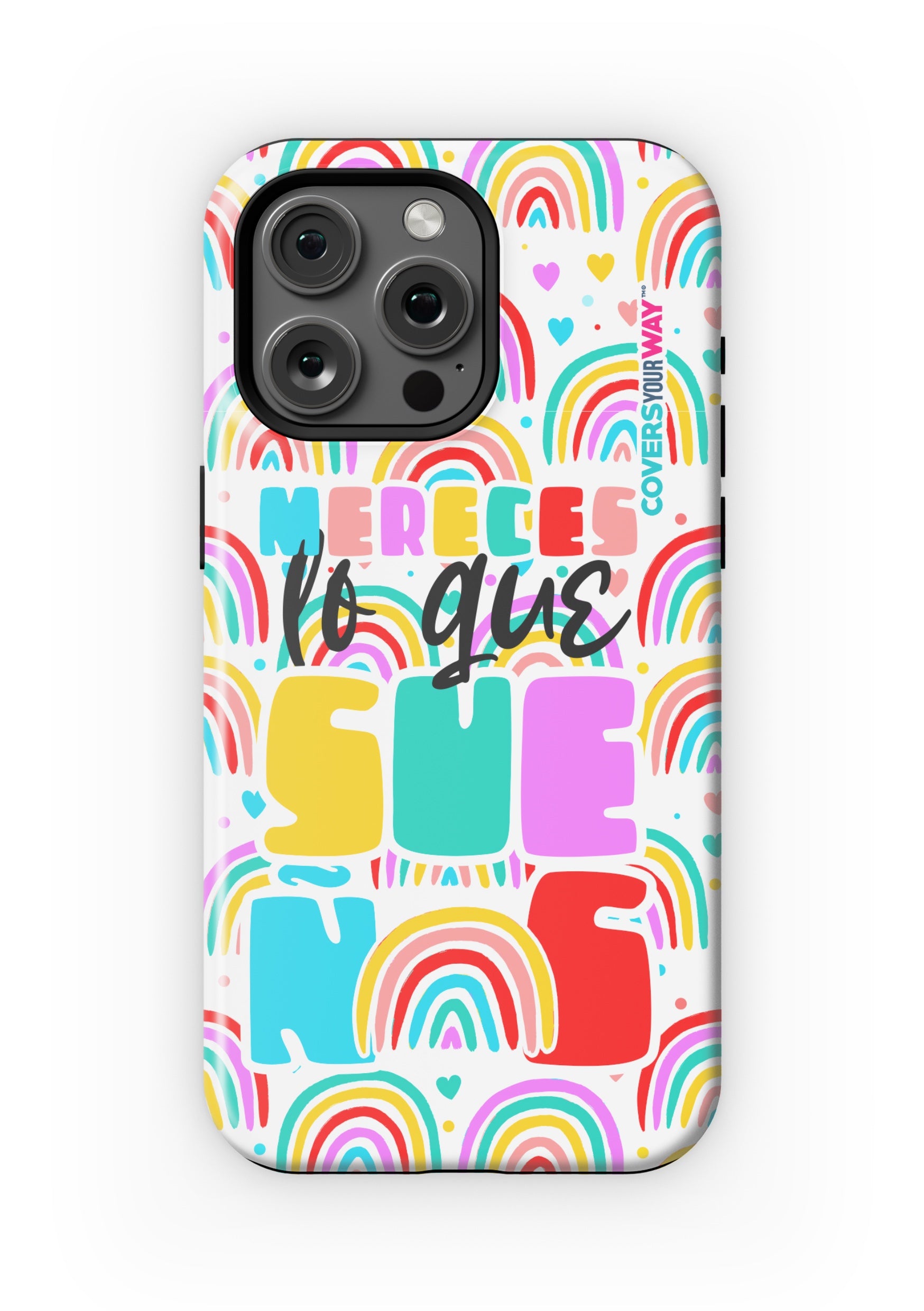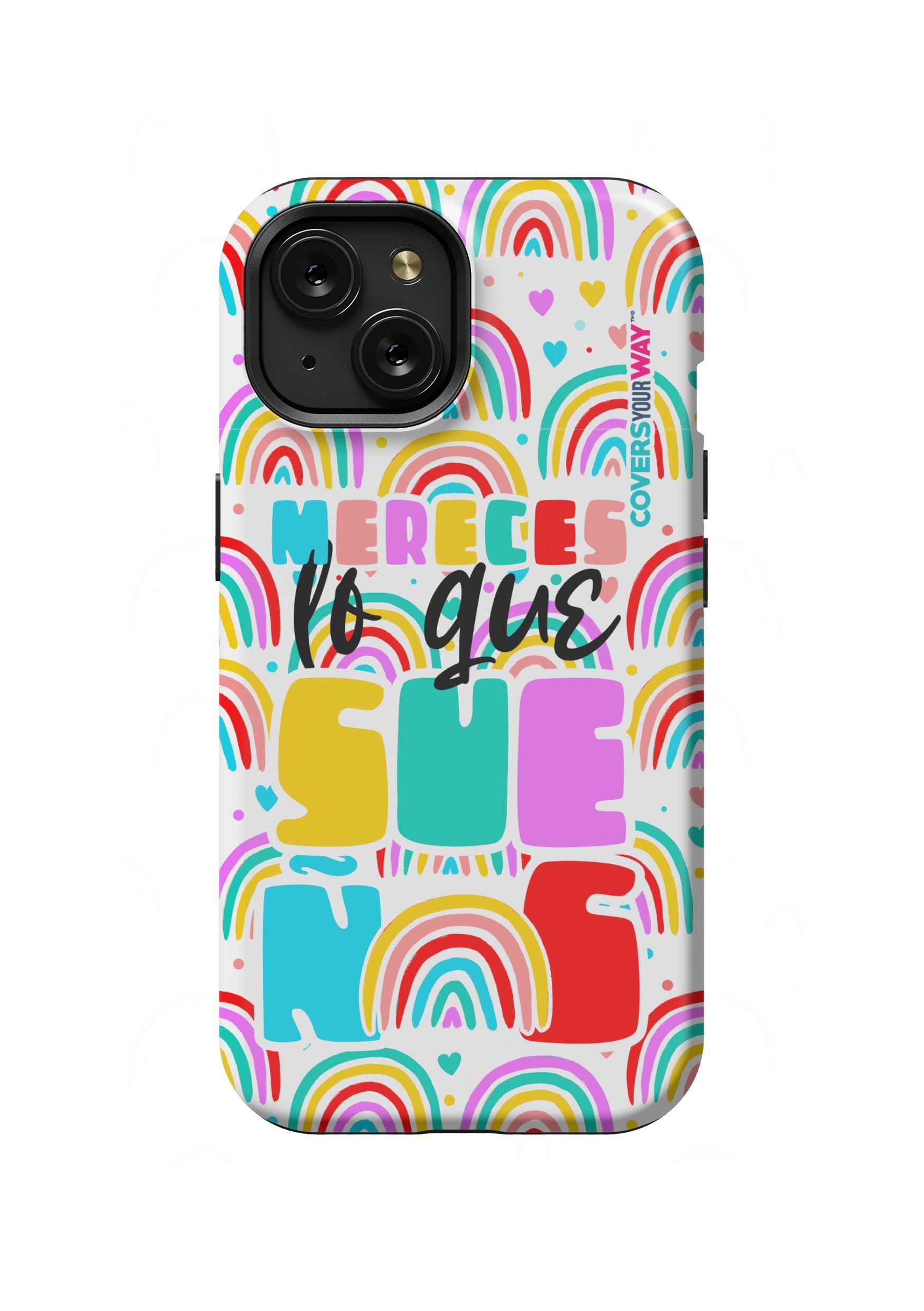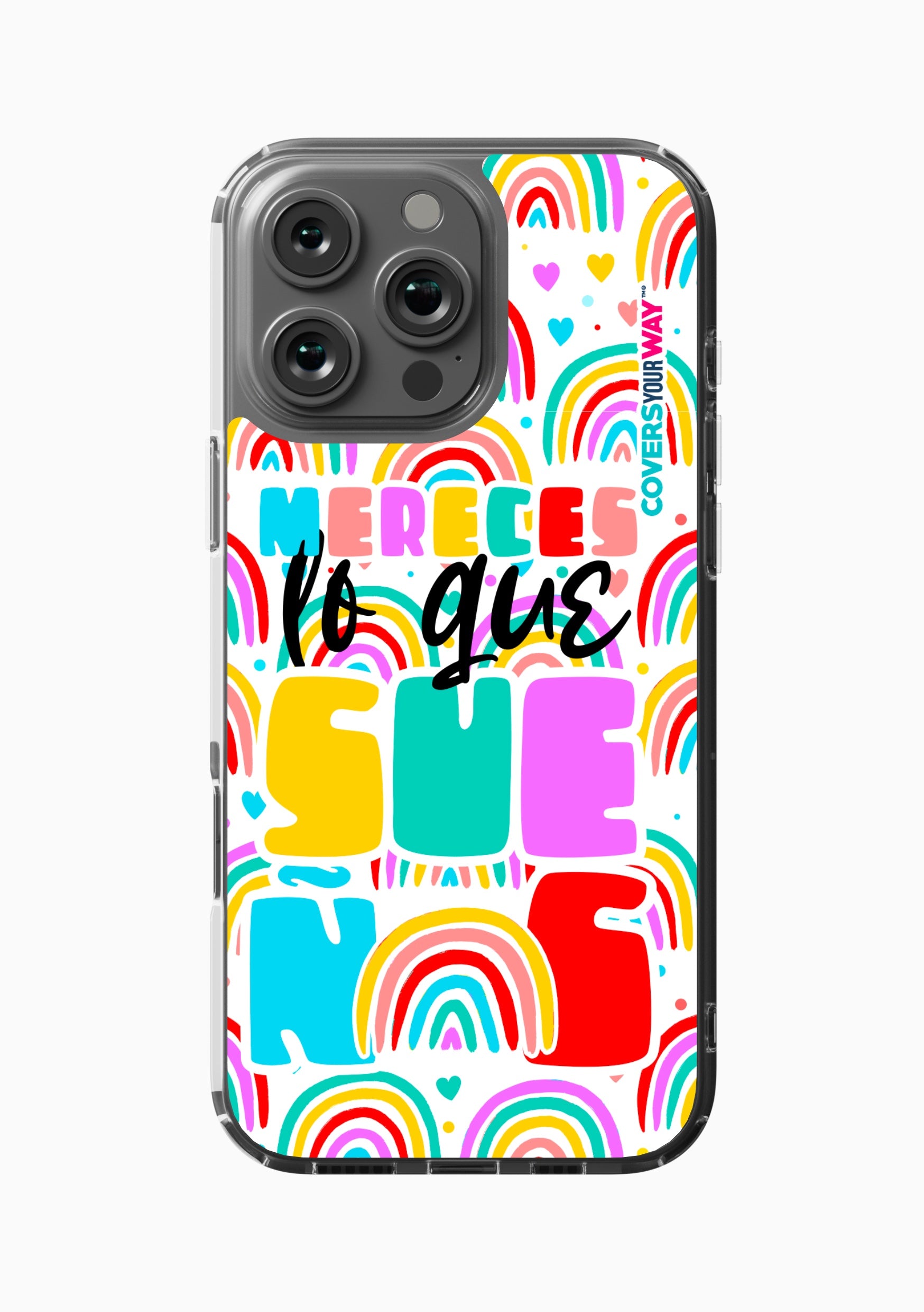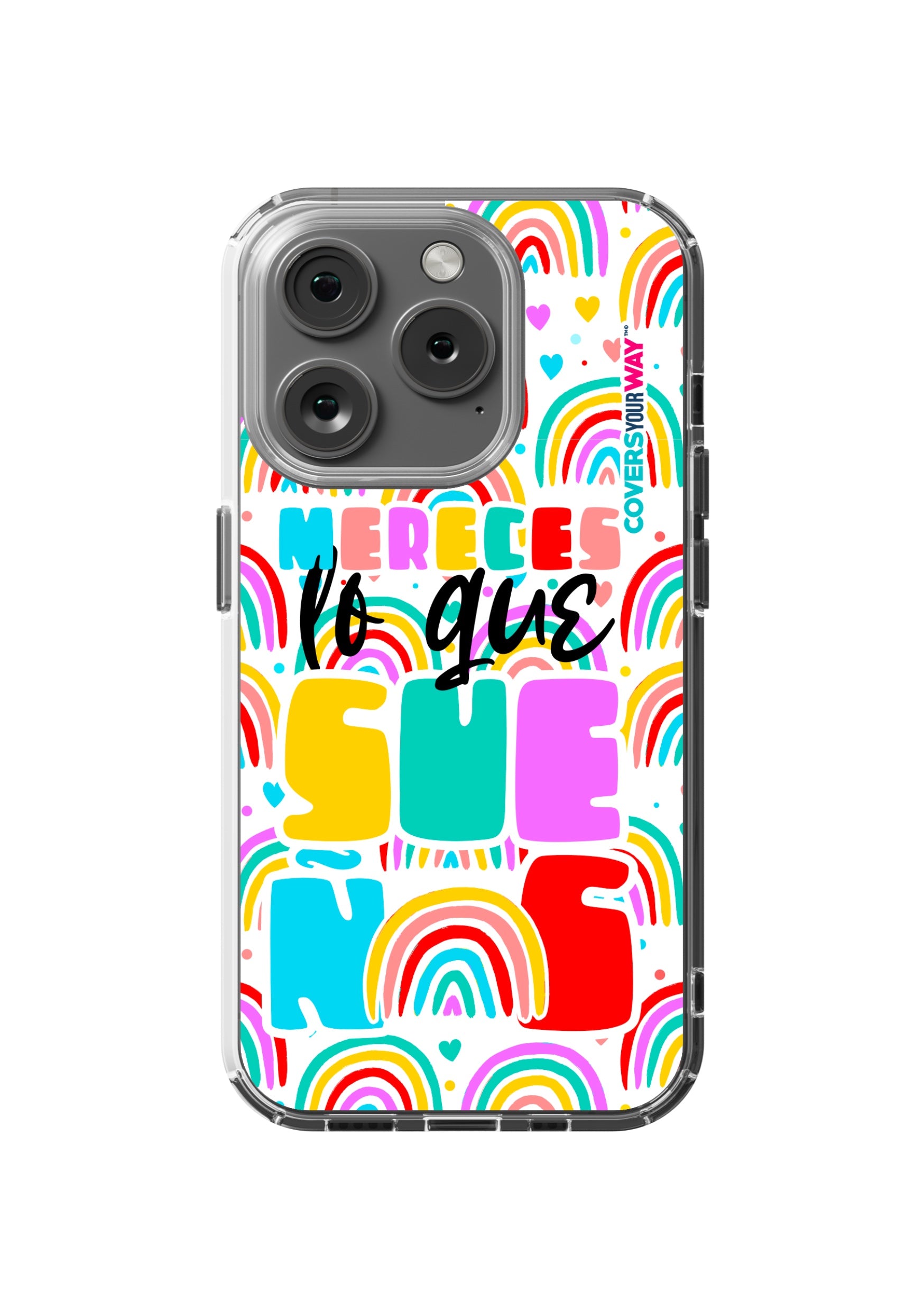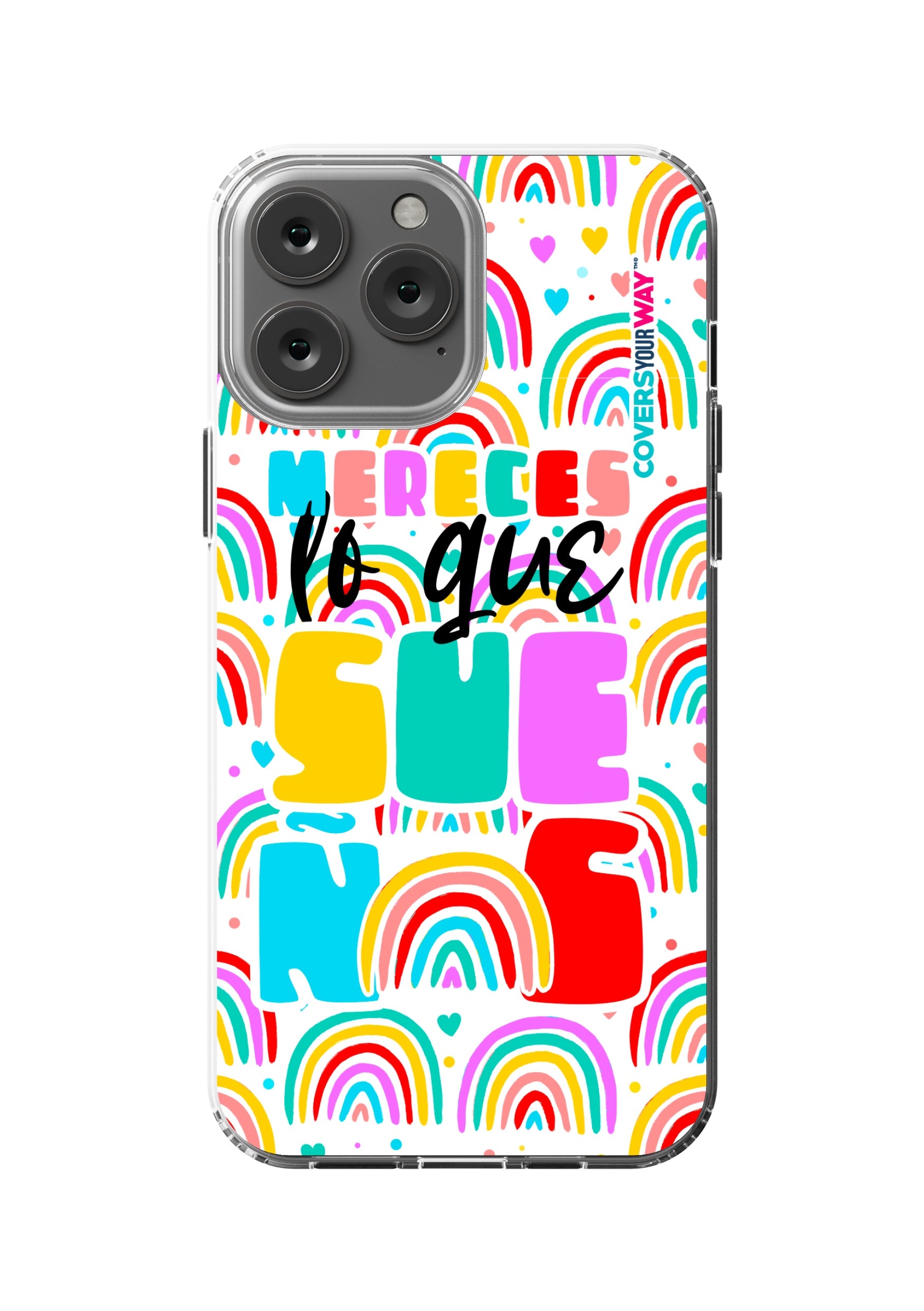 Protect your phone in style with this exclusive case that combines durability and inspiring design. Featuring the phrase “Mereces lo que sueñas”, it stands out with an colorful finish—perfect for those who believe in their goals and want to carry motivation everywhere.