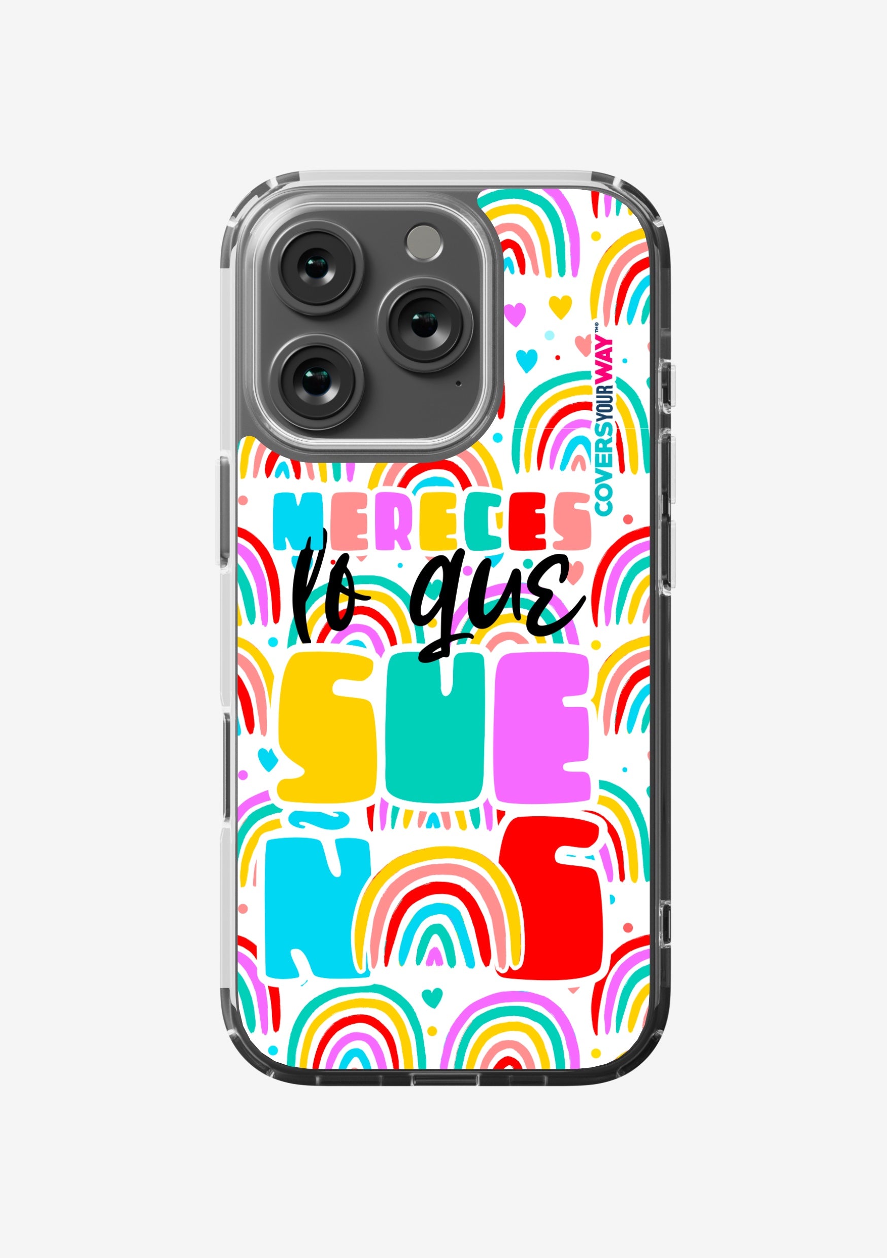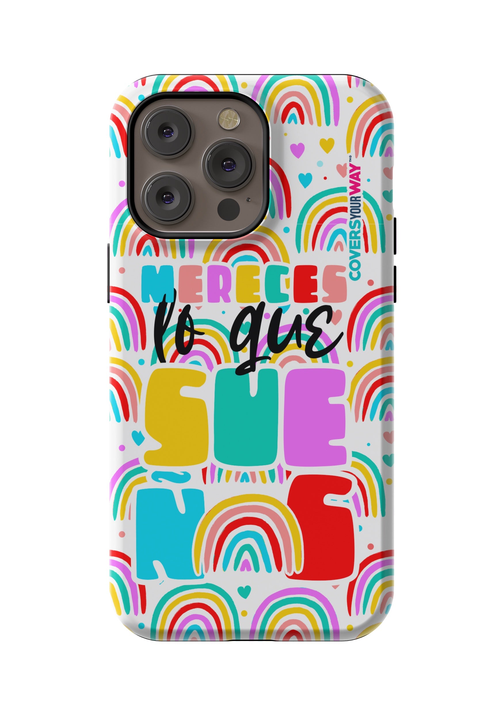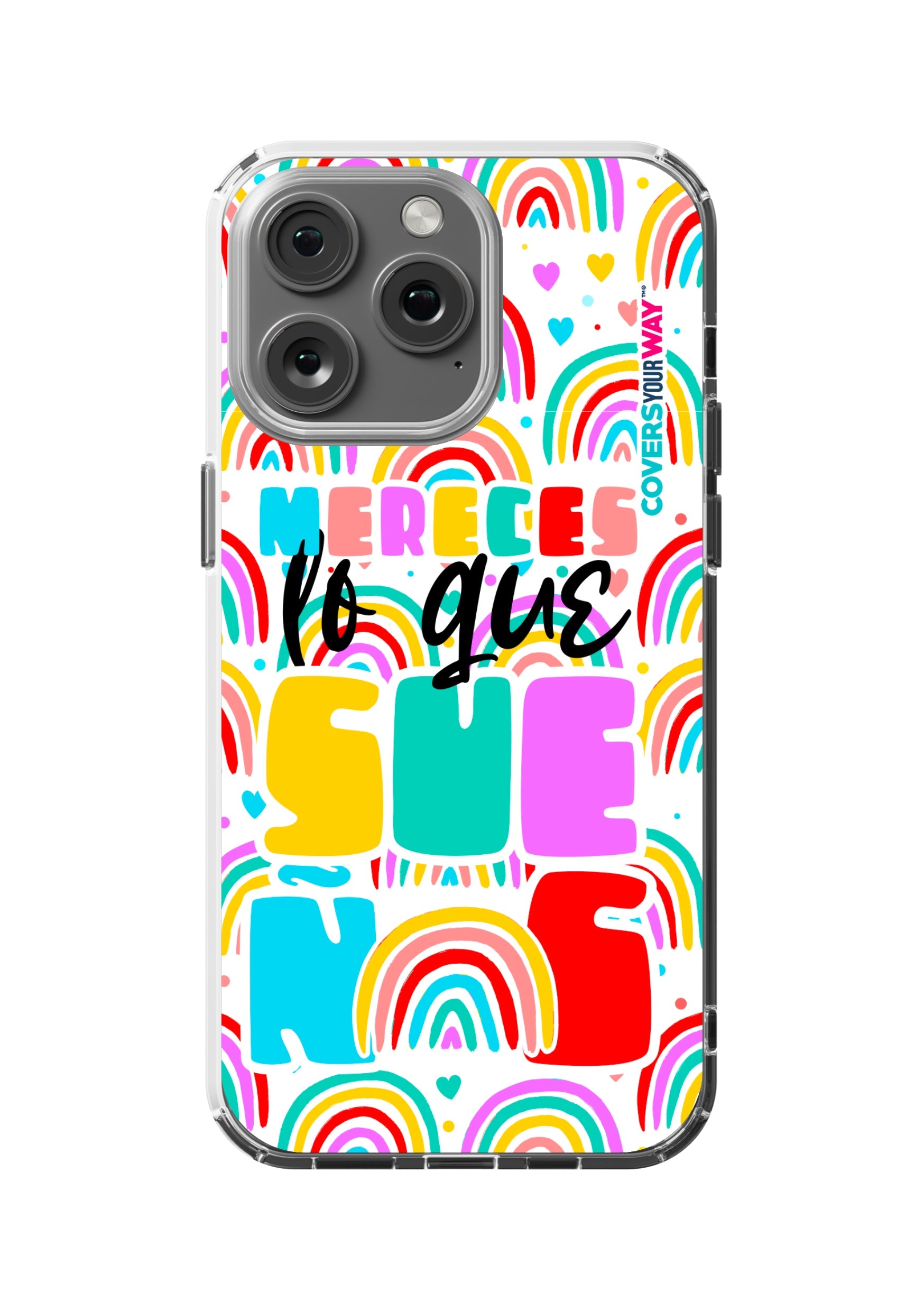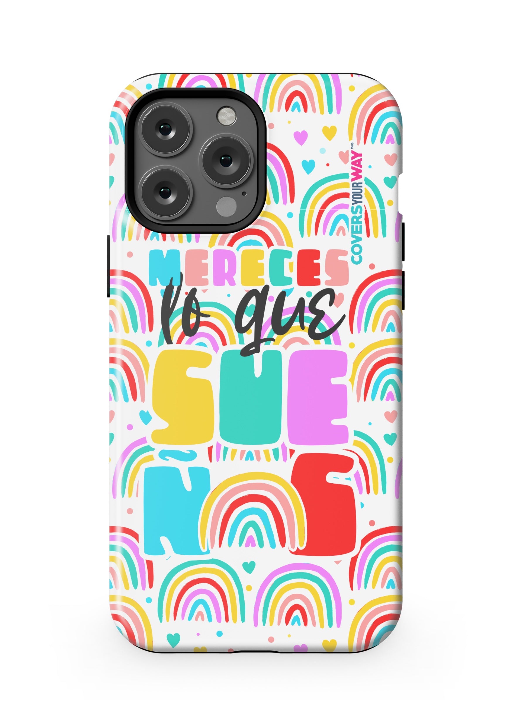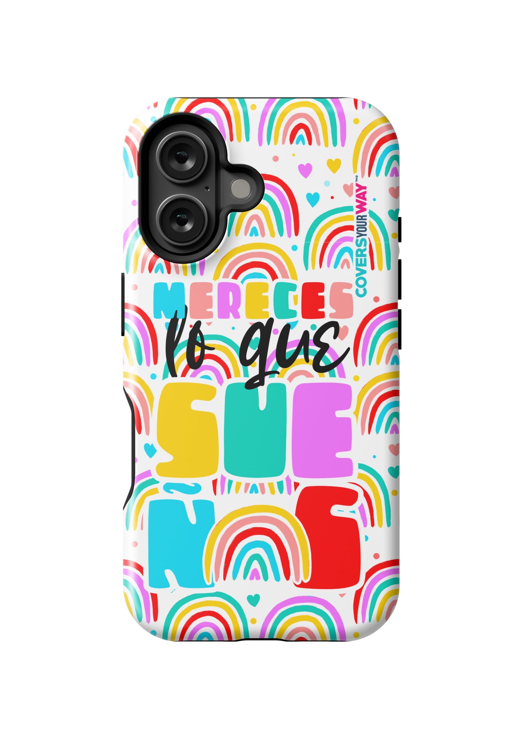 Protect your phone in style with this exclusive case that combines durability and inspiring design. Featuring the phrase “Mereces lo que sueñas”, it stands out with an colorful finish—perfect for those who believe in their goals and want to carry motivation everywhere.