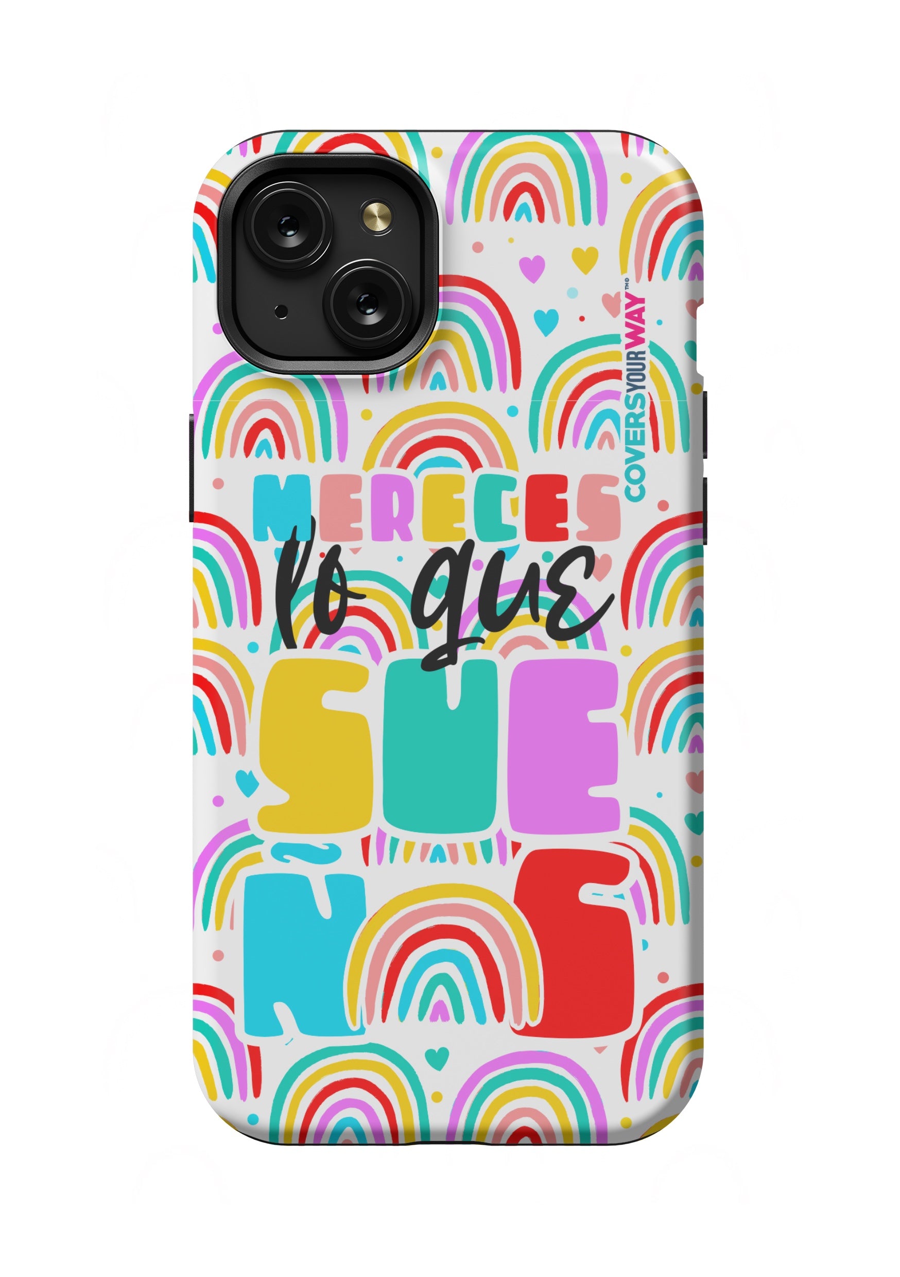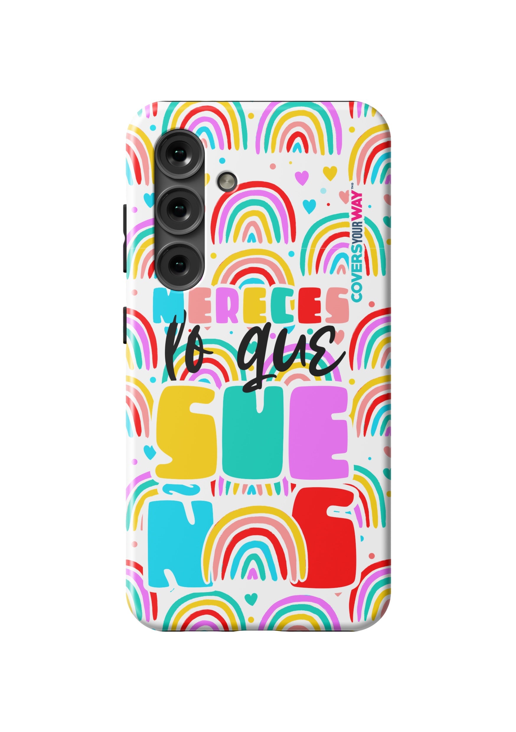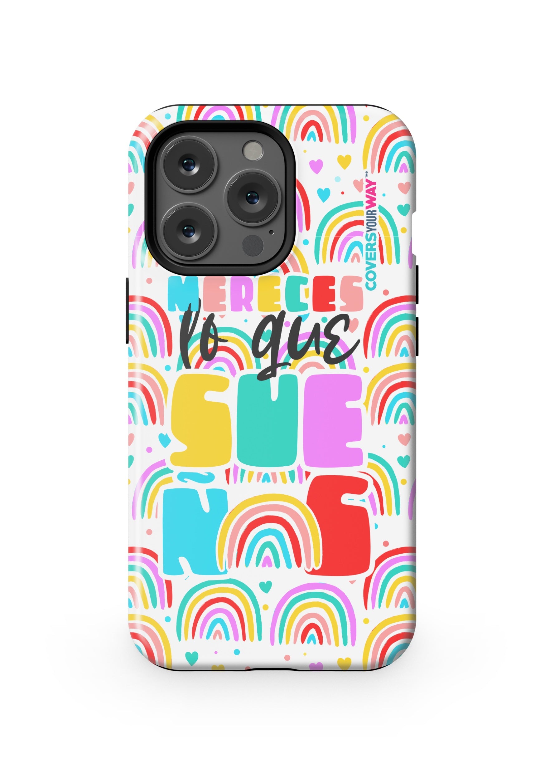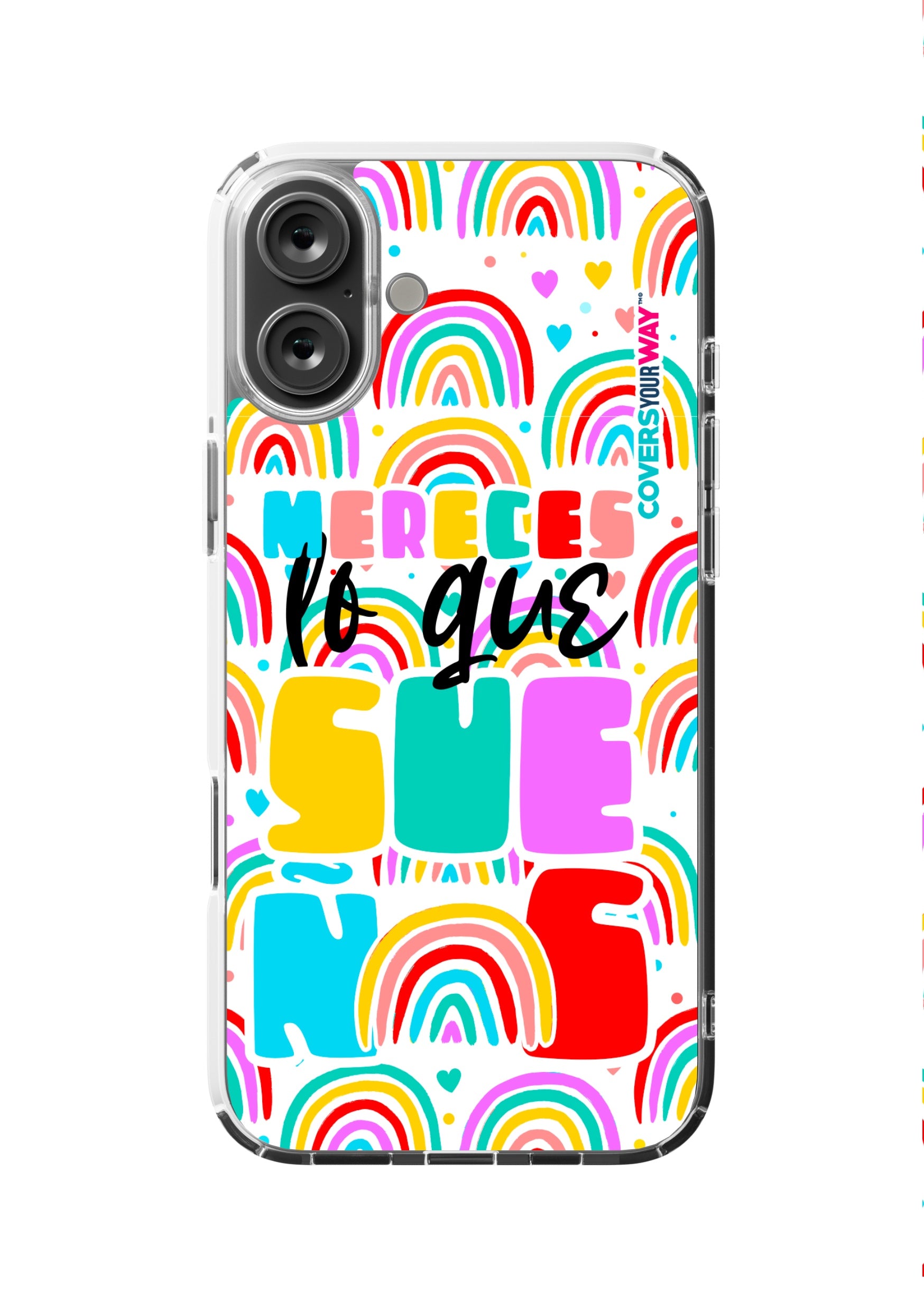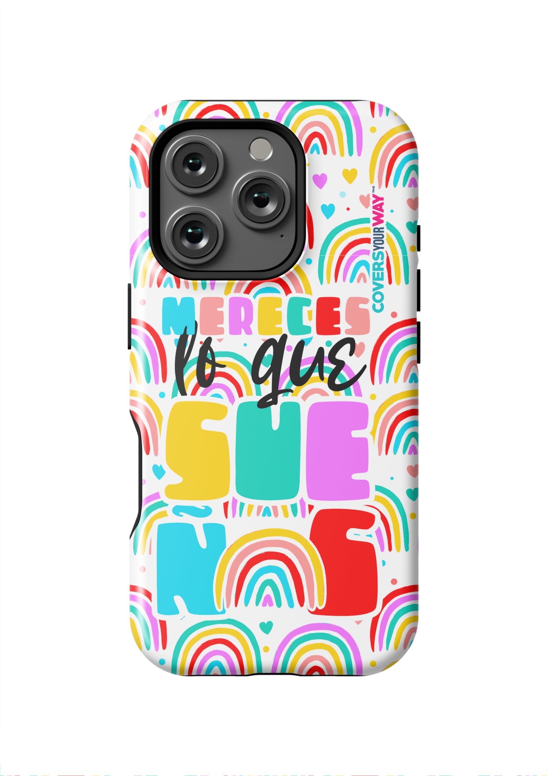 Protect your phone in style with this exclusive case that combines durability and inspiring design. Featuring the phrase “Mereces lo que sueñas”, it stands out with an colorful finish—perfect for those who believe in their goals and want to carry motivation everywhere.