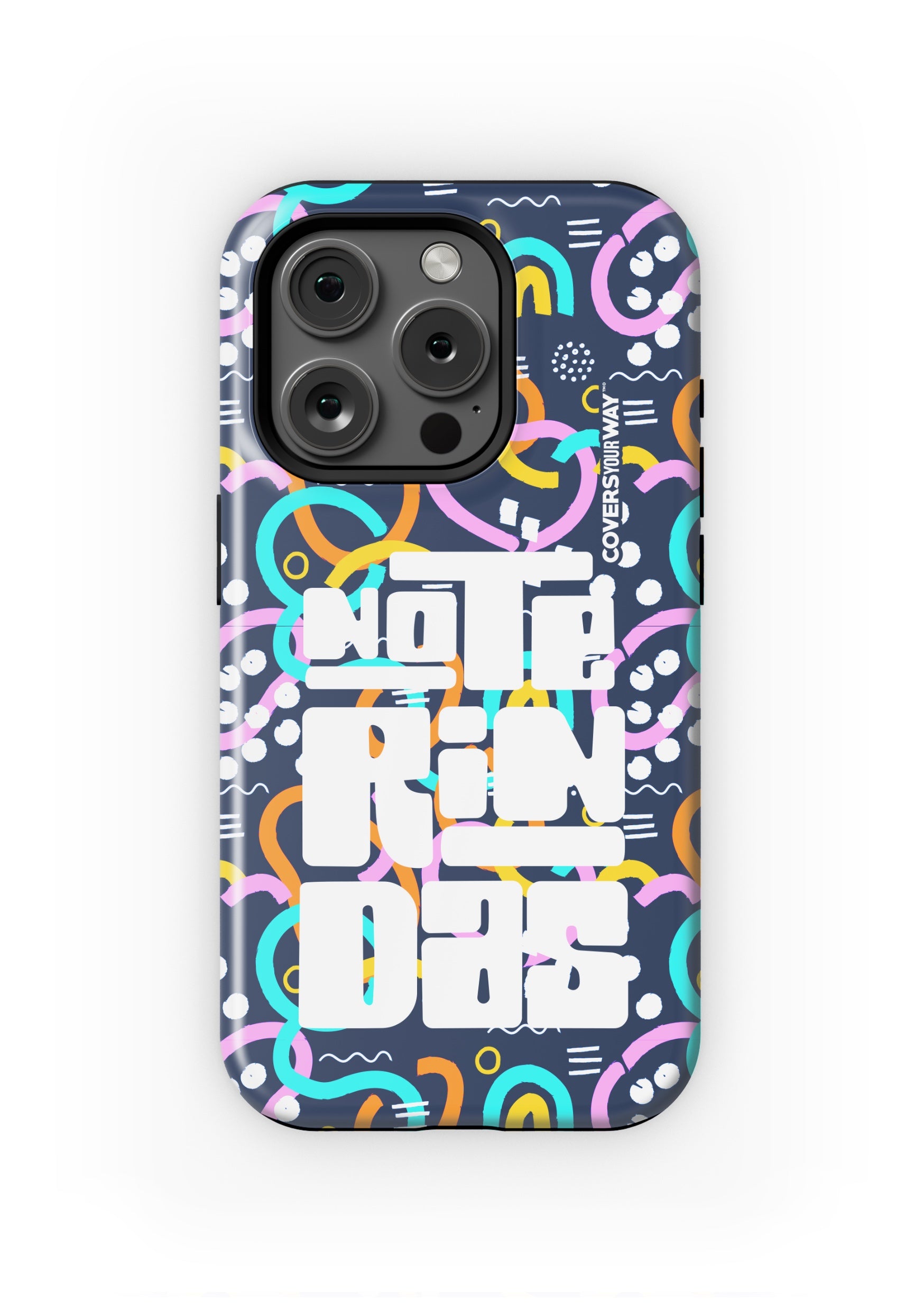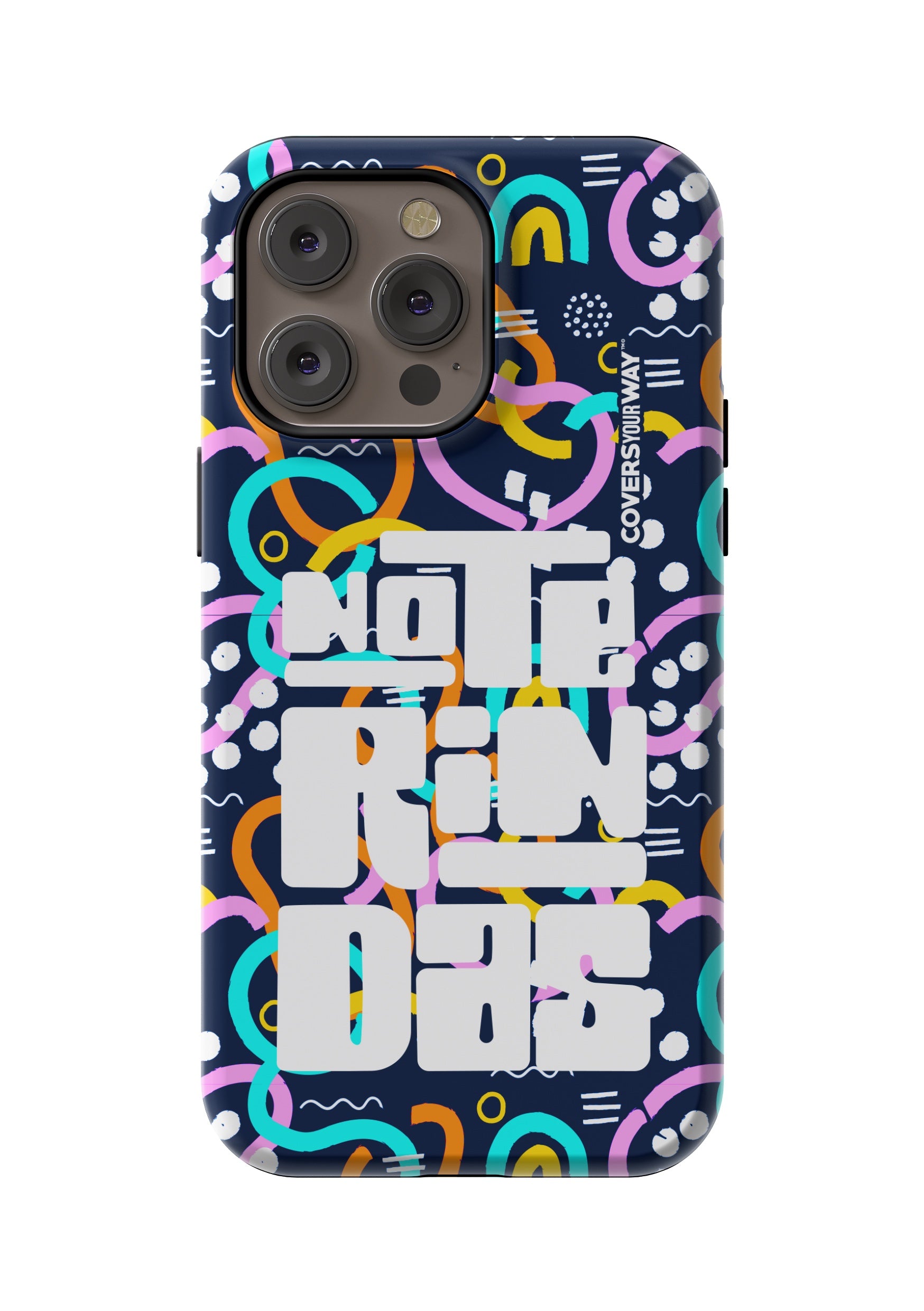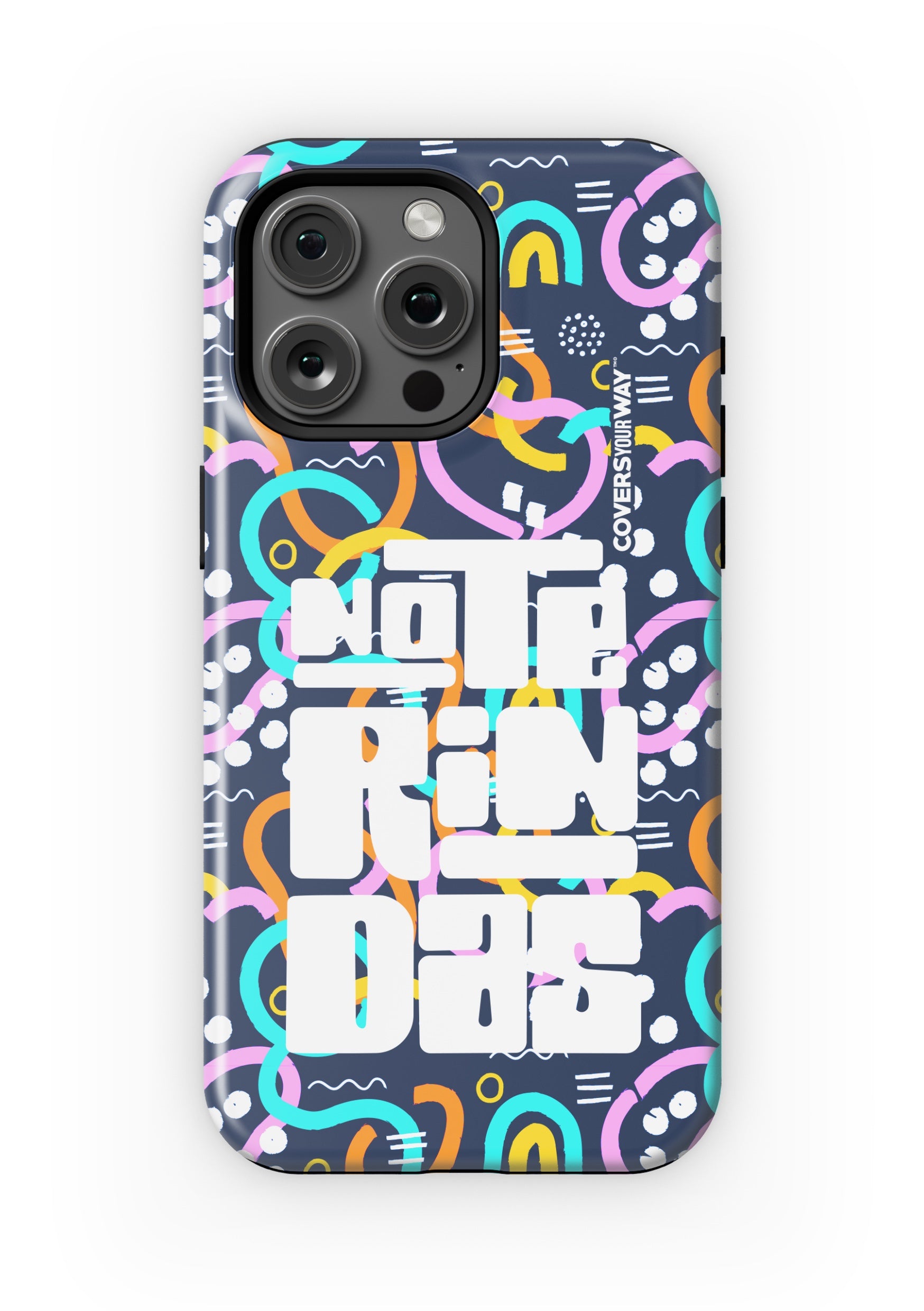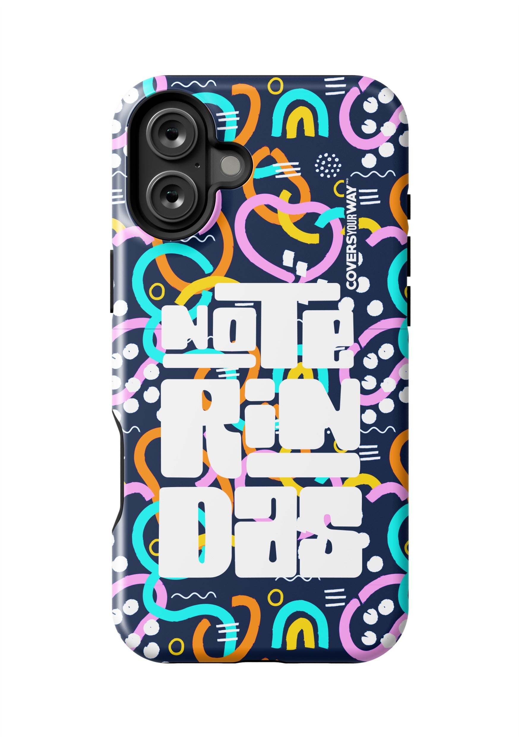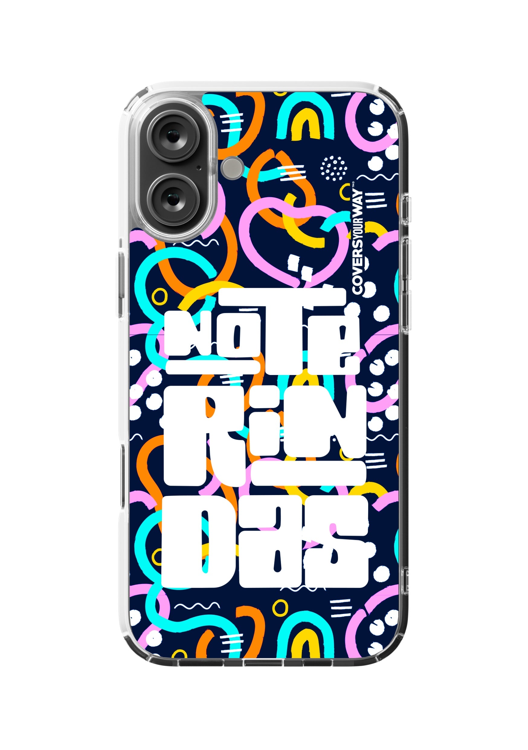 This phone case features an exclusive and powerful design with the phrase "No te RINDAS" prominently displayed at the center. The typography combines bold uppercase letters with an energetic style, conveying determination and strength. The background includes vibrant color accents that highlight the message of perseverance. It's perfect for those seeking daily motivation and a constant reminder to never give up.