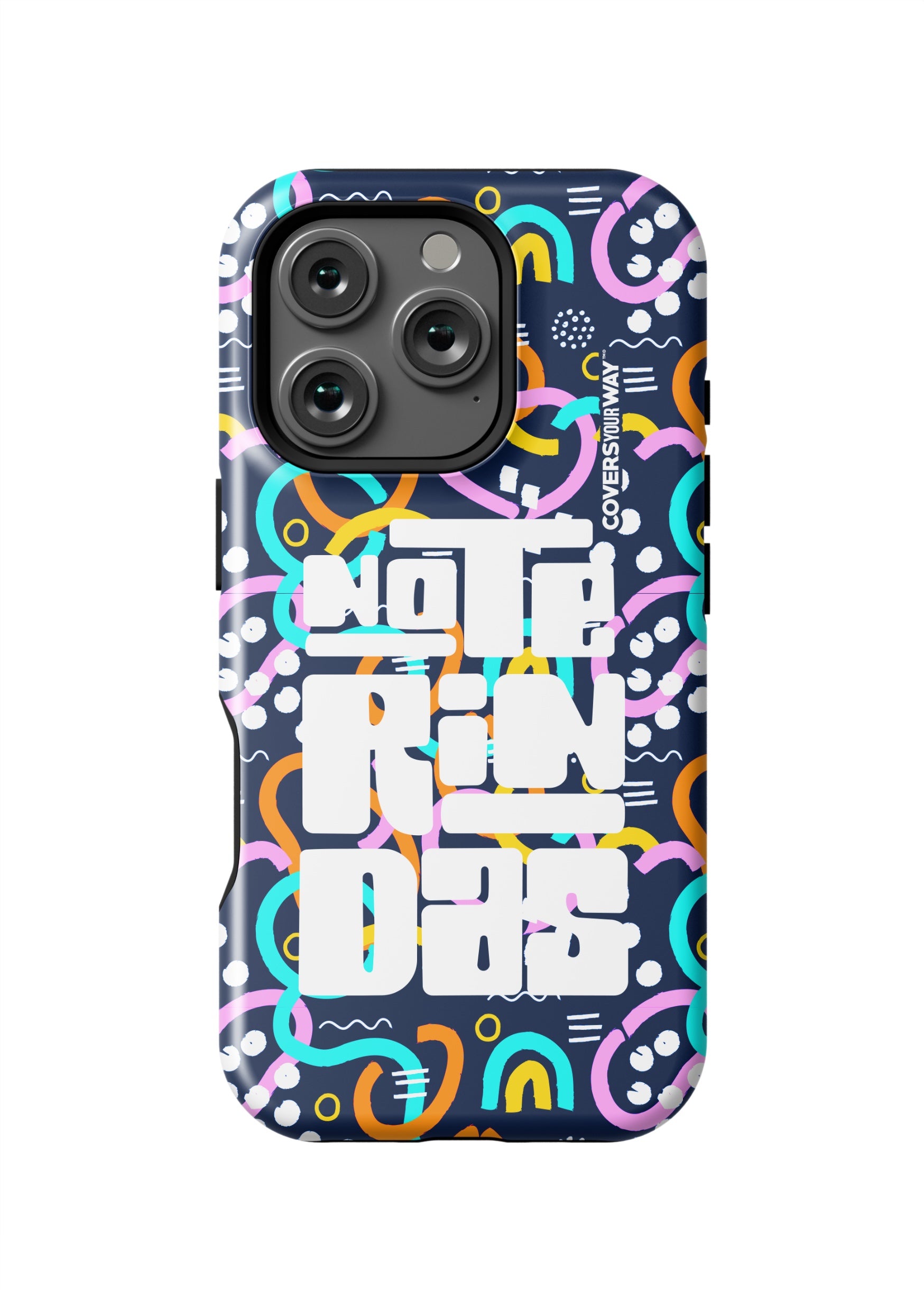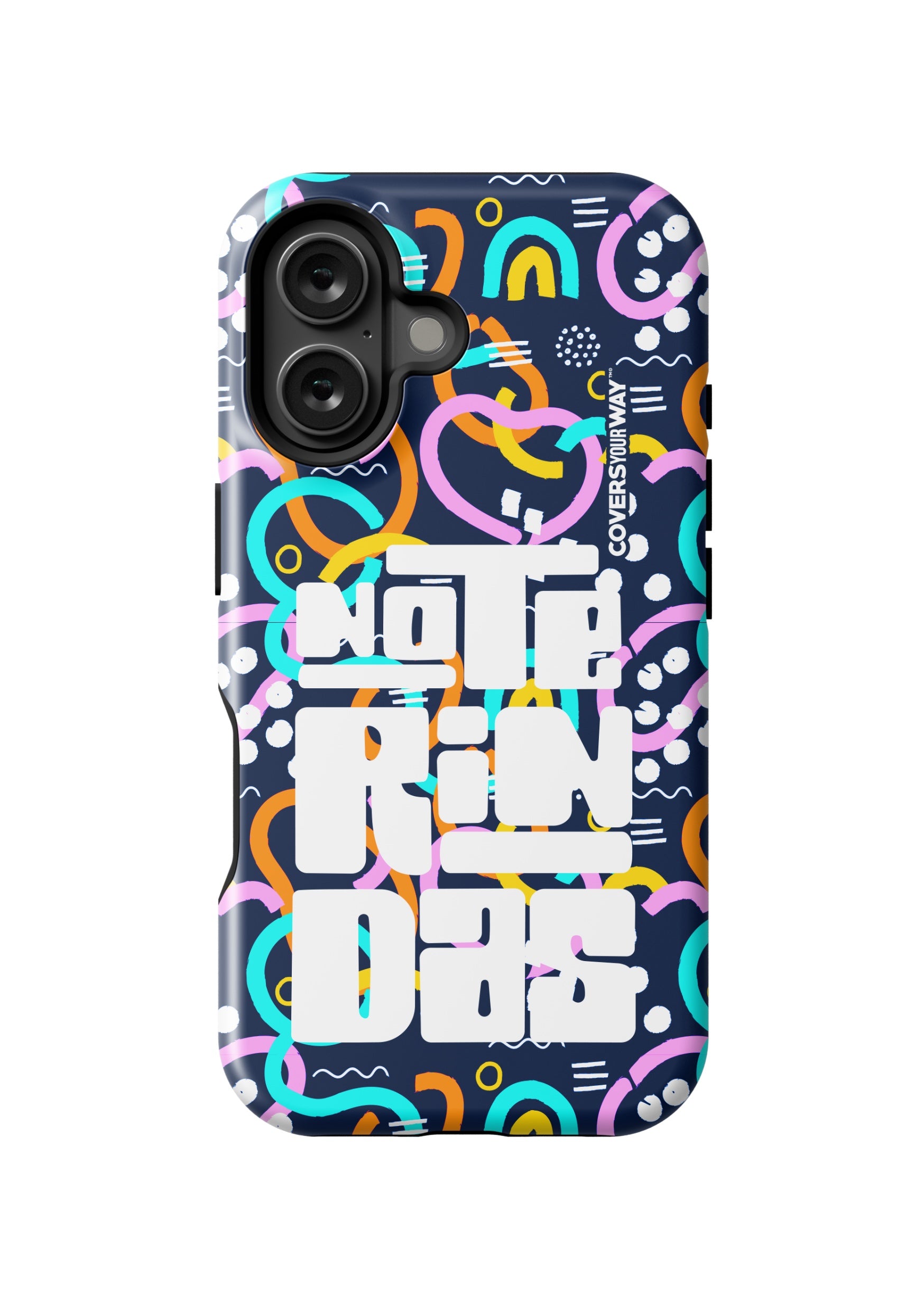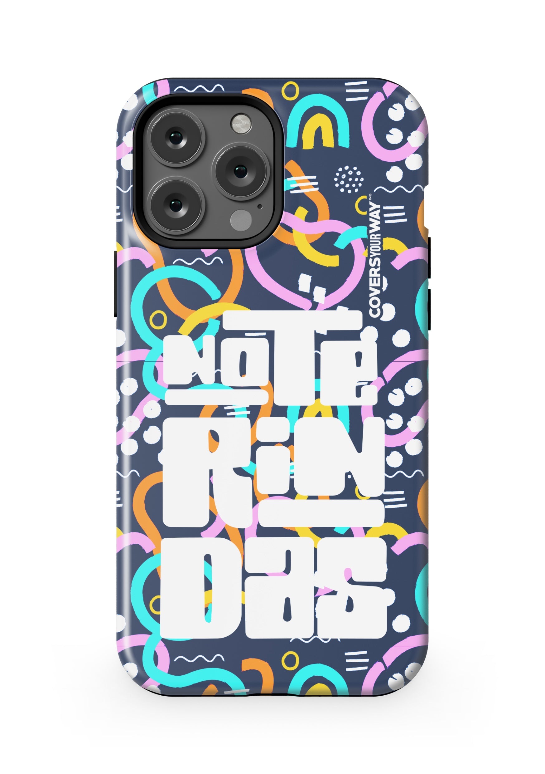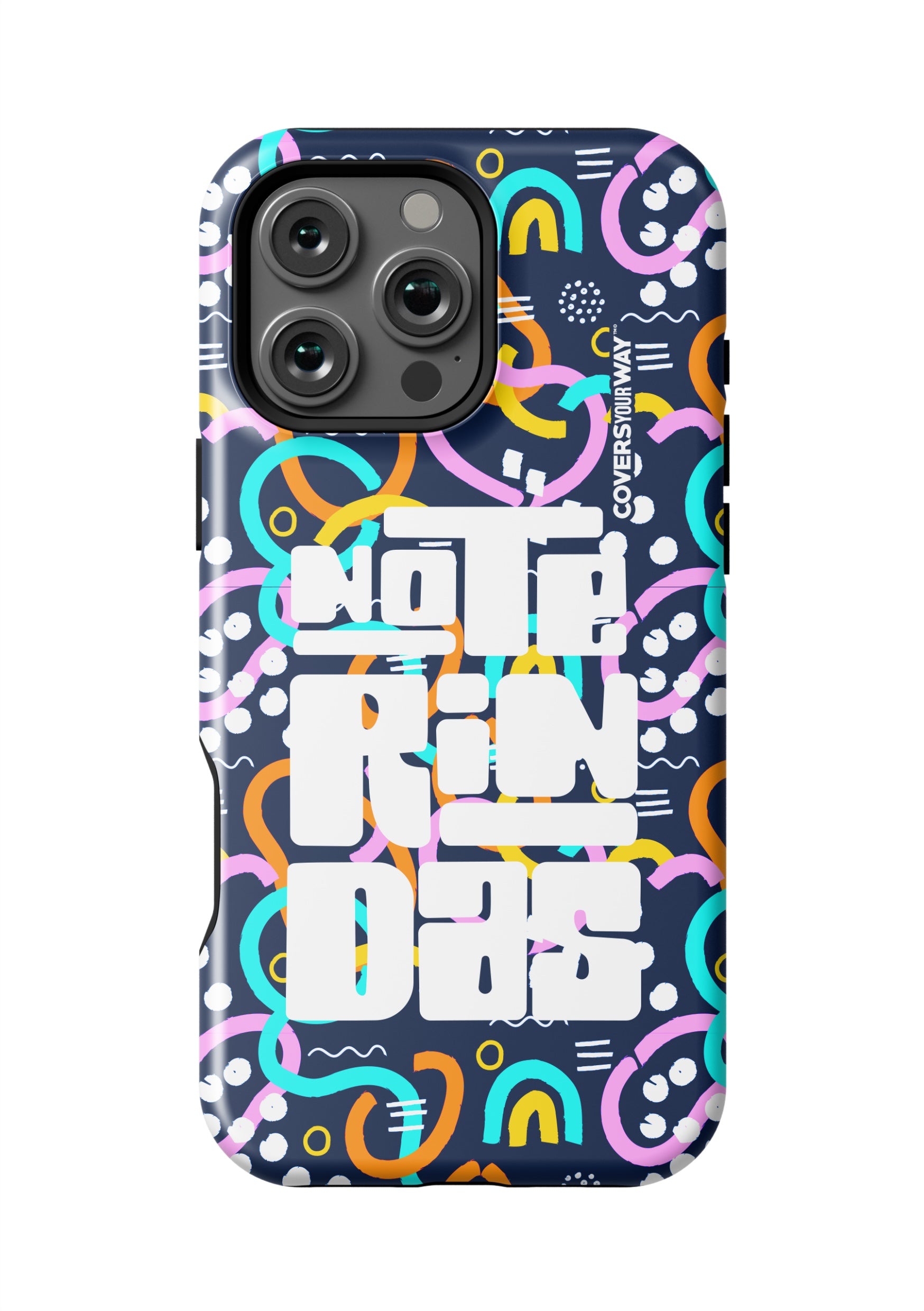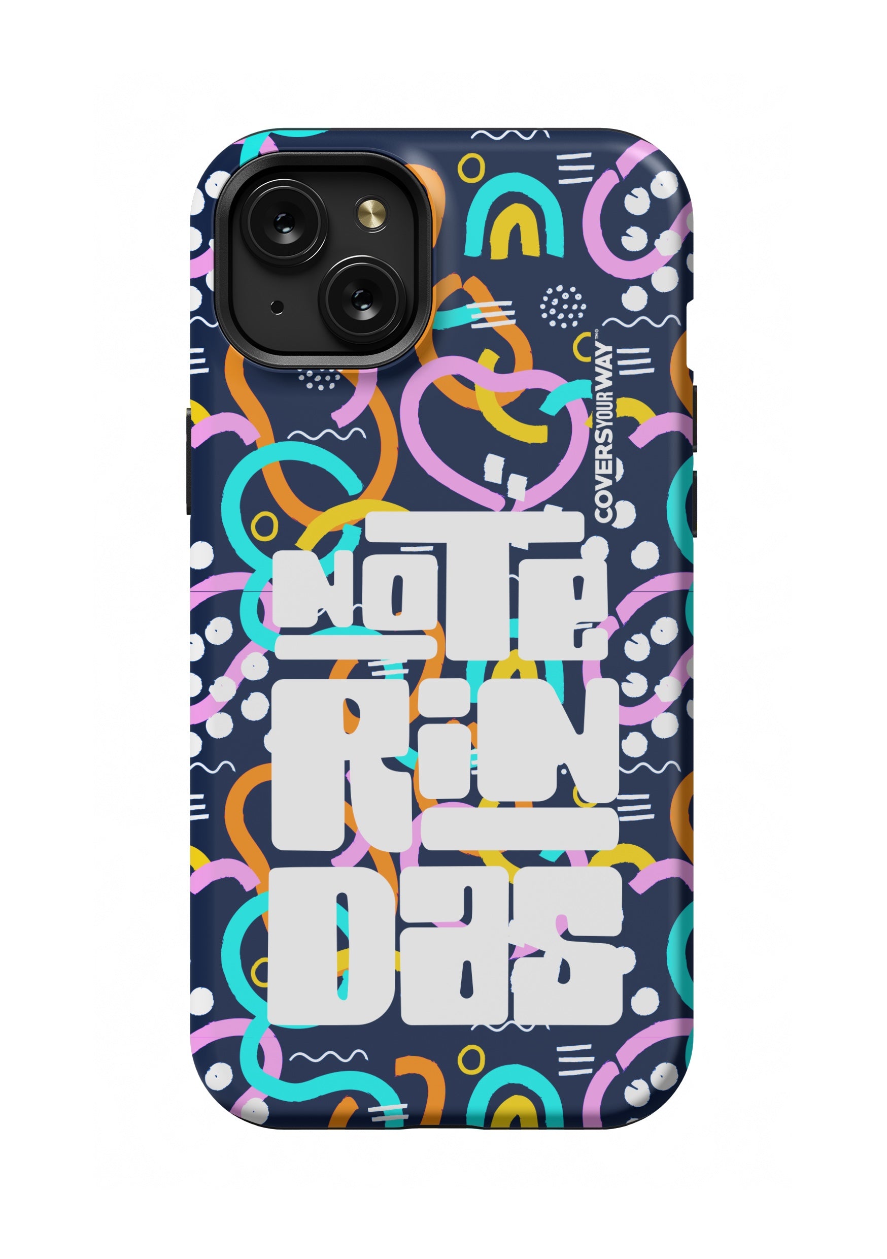 This phone case features an exclusive and powerful design with the phrase "No te RINDAS" prominently displayed at the center. The typography combines bold uppercase letters with an energetic style, conveying determination and strength. The background includes vibrant color accents that highlight the message of perseverance. It's perfect for those seeking daily motivation and a constant reminder to never give up.