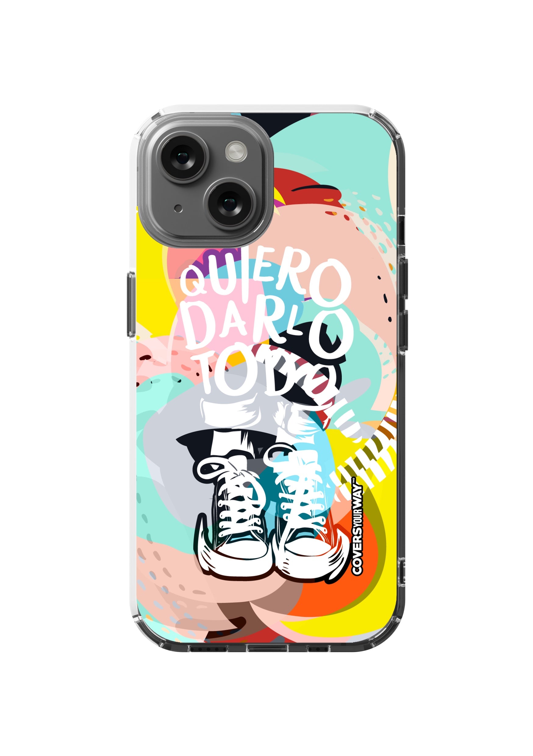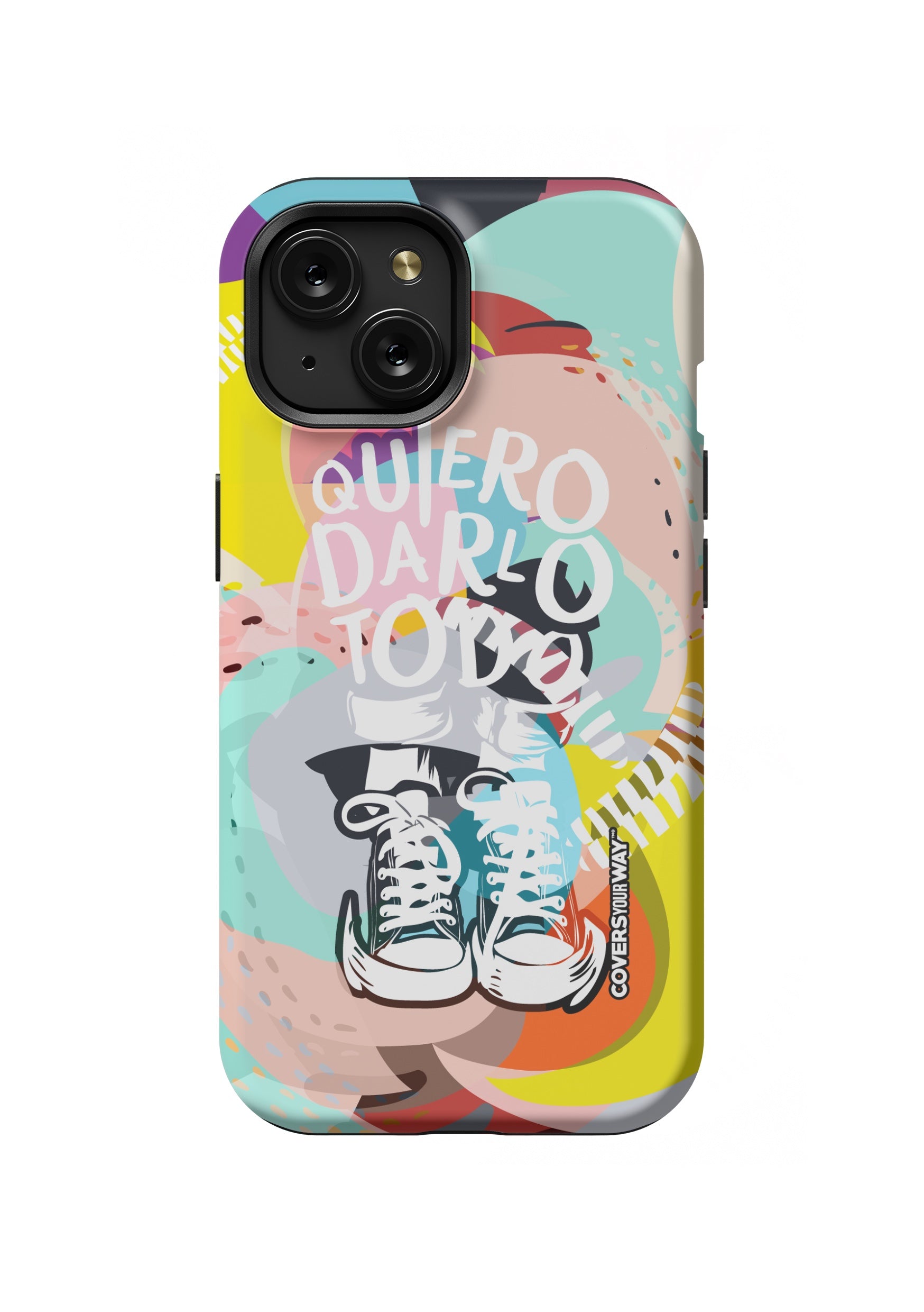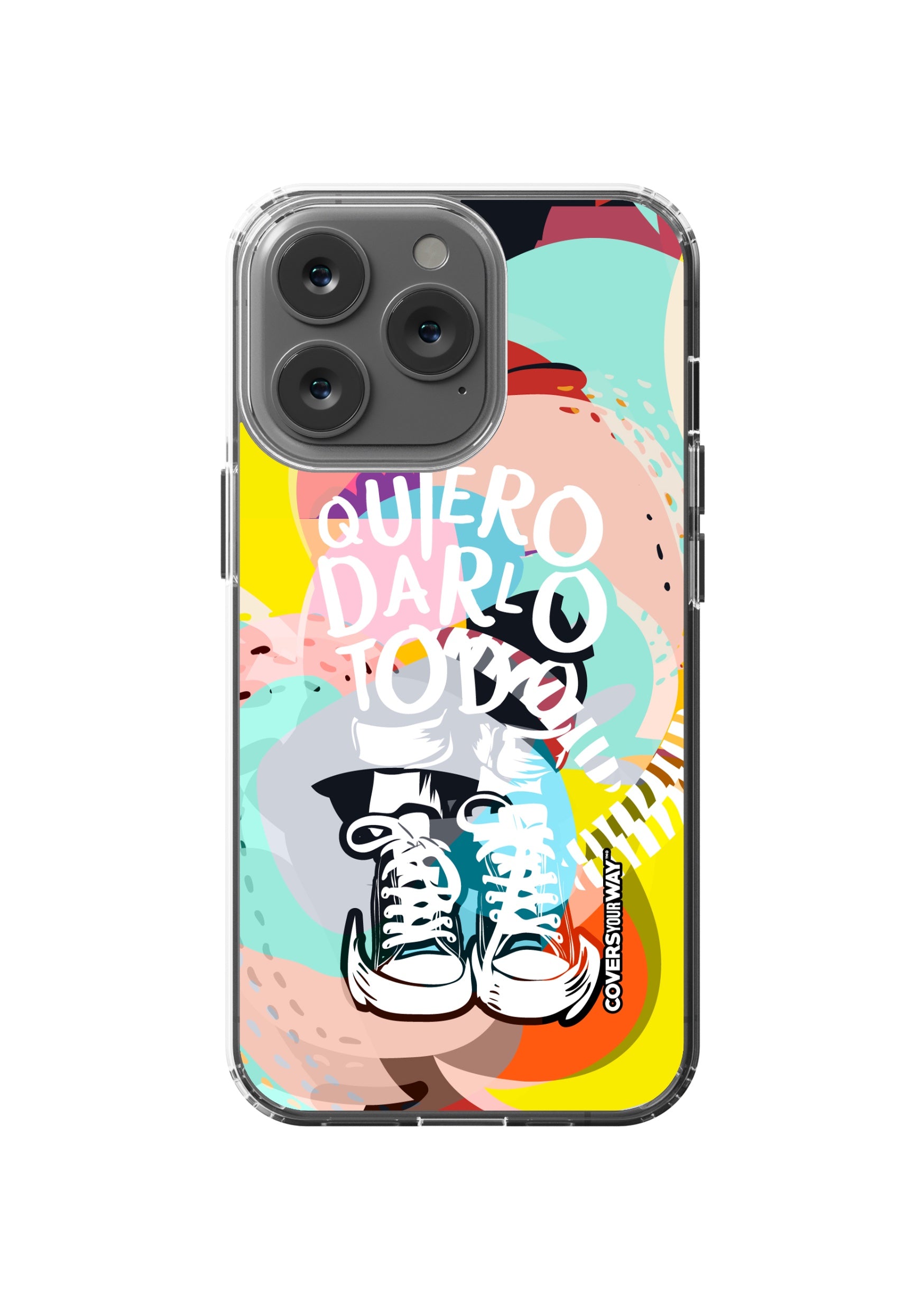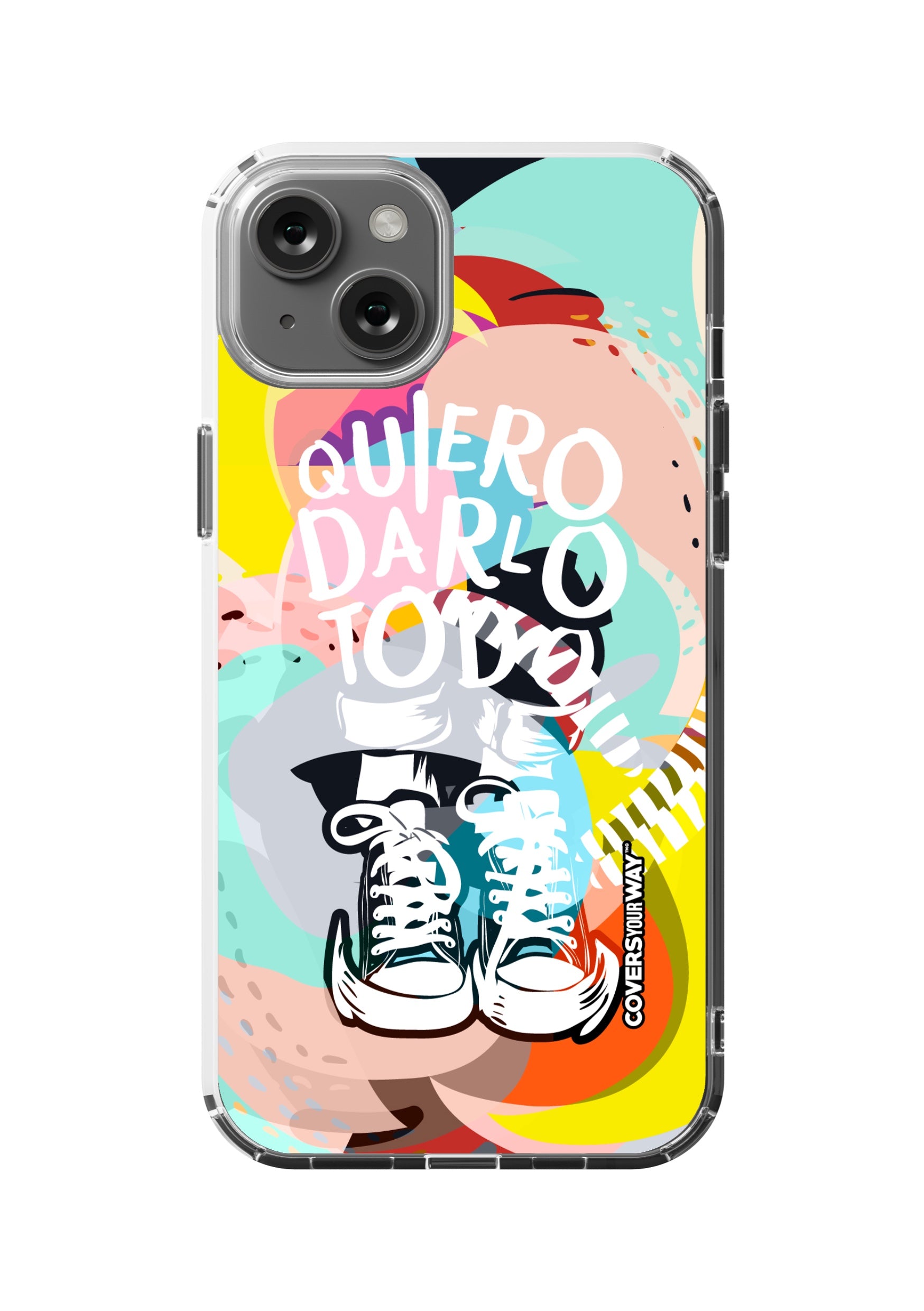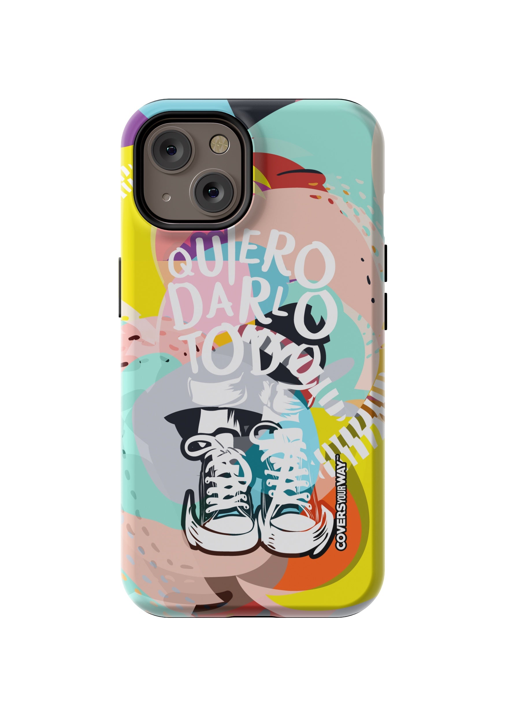 A phone case with the exclusive design featuring the phrase "Quiero darlo TODO" radiates energy, determination, and passion. Made from durable materials like silicone or polycarbonate, it features a dynamic design that reflects strength and movement. The phrase, in a modern and expressive font, takes center stage—serving as a reminder to give your all in every moment. It's the perfect accessory for bold, passionate individuals with an unstoppable attitude.