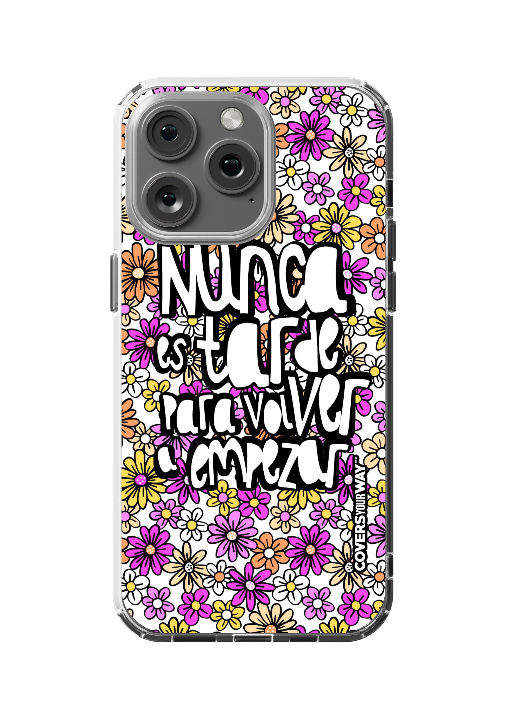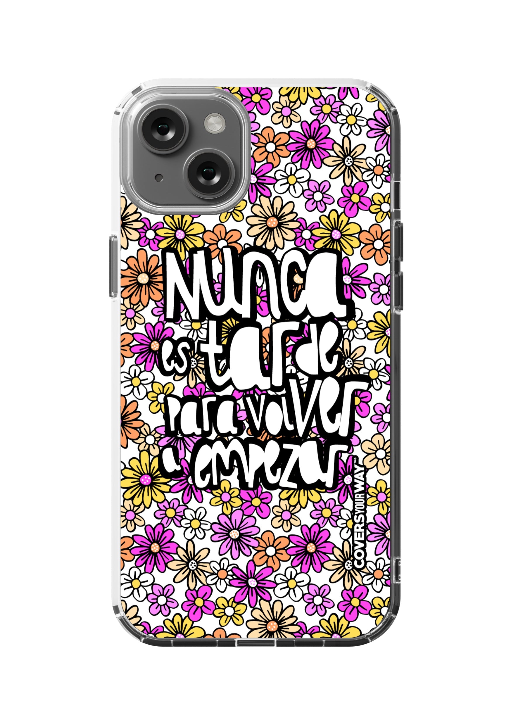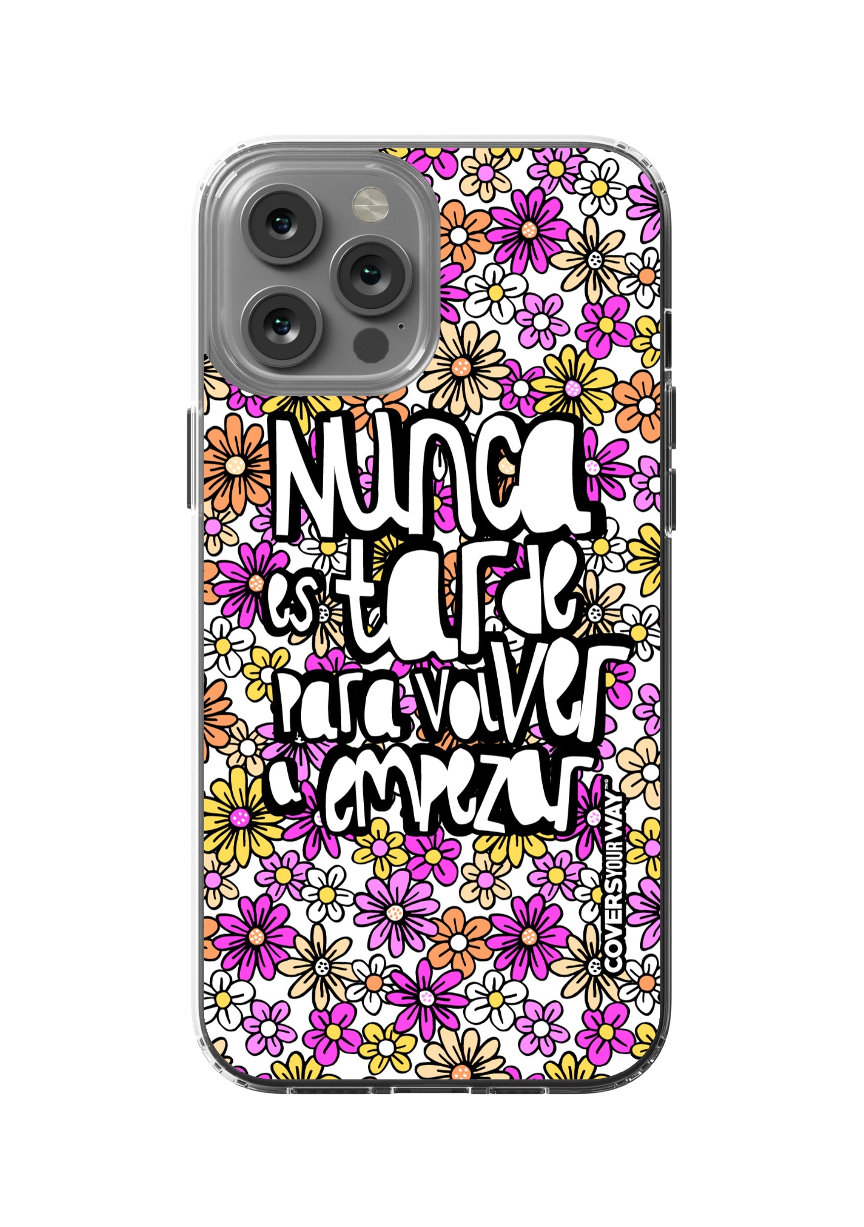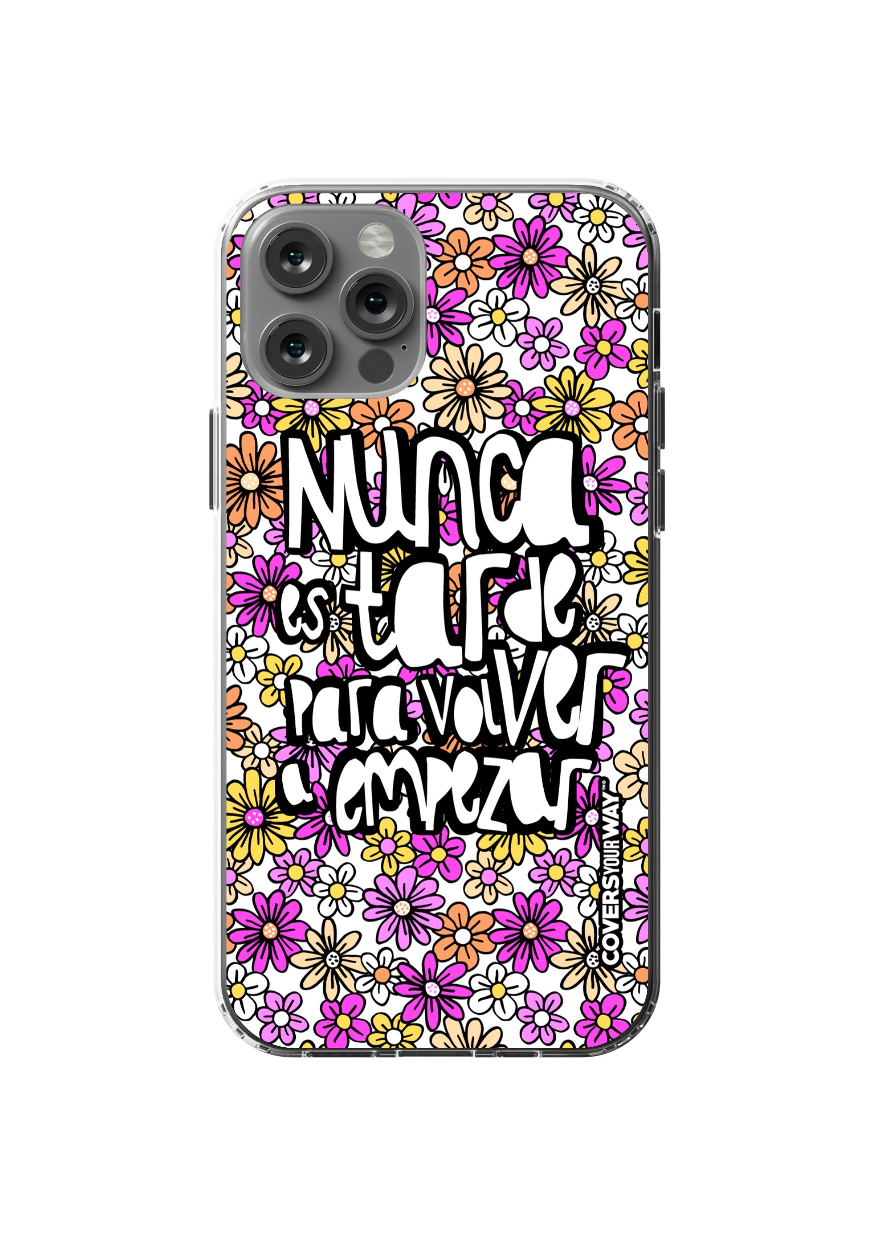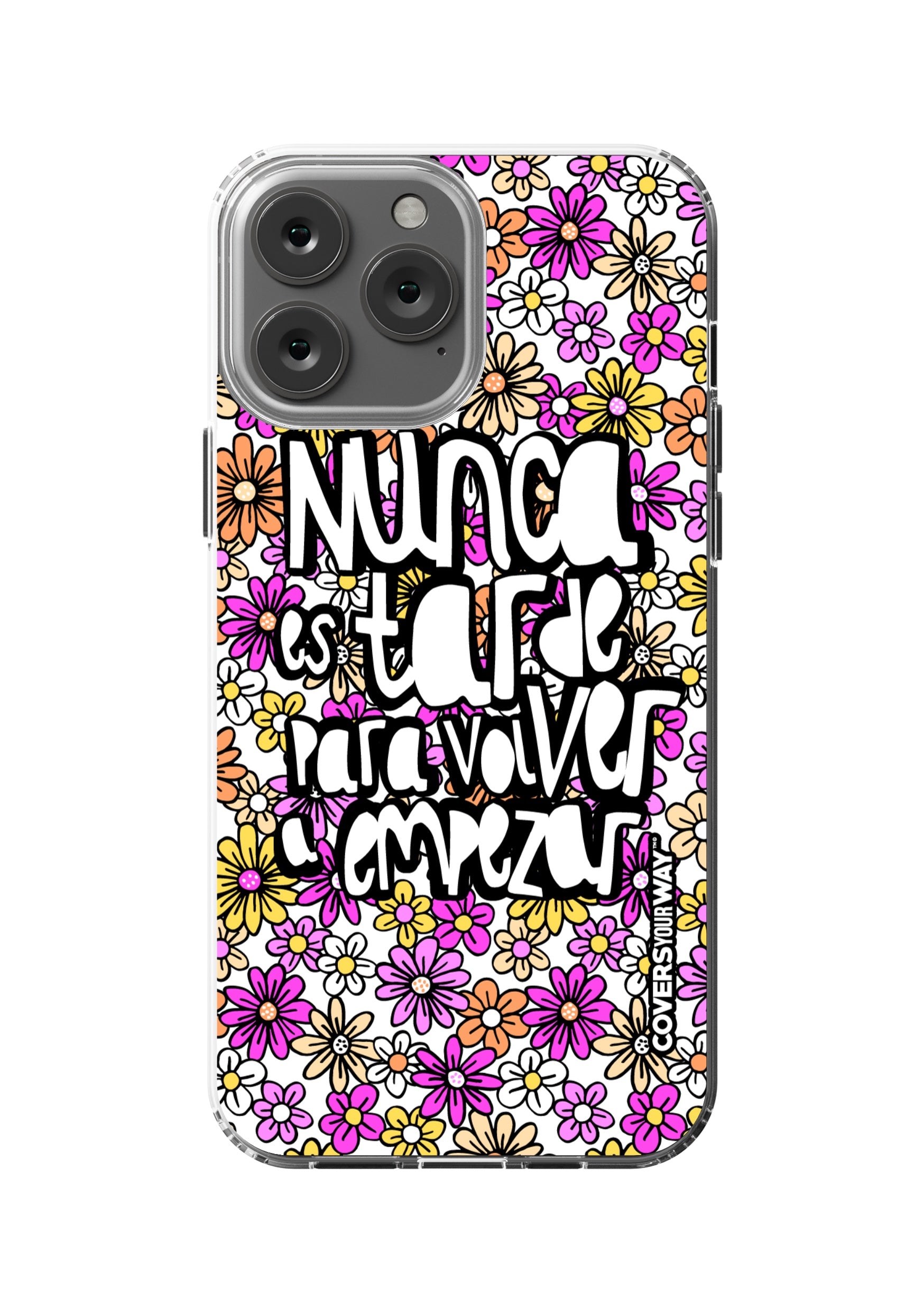 Refresh your style and energy with this durable phone case, designed with the phrase "Nunca Es Tarde Para Volver a Empezar". It protects your device from bumps and scratches while sharing a message of hope, second chances, and new beginnings.