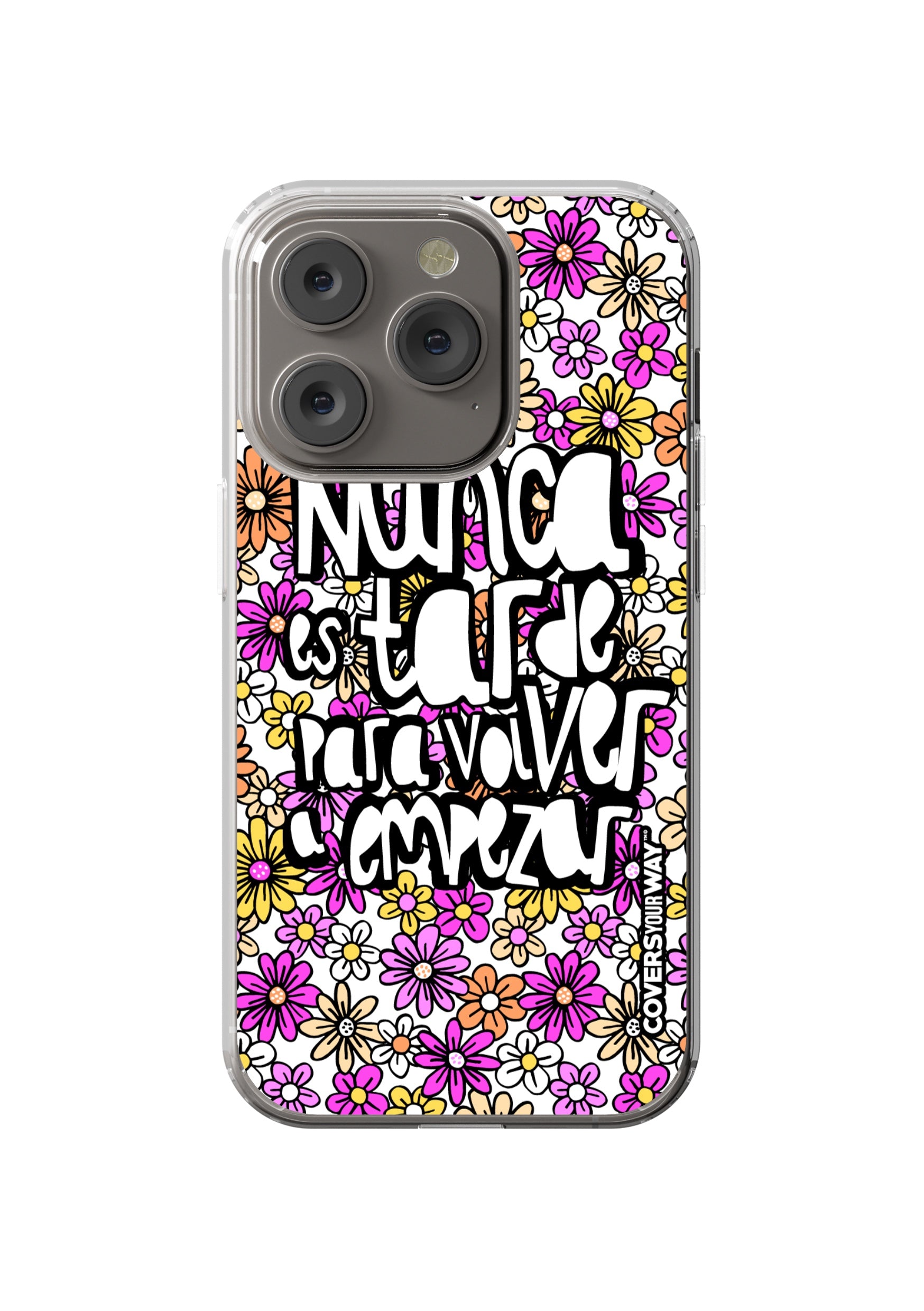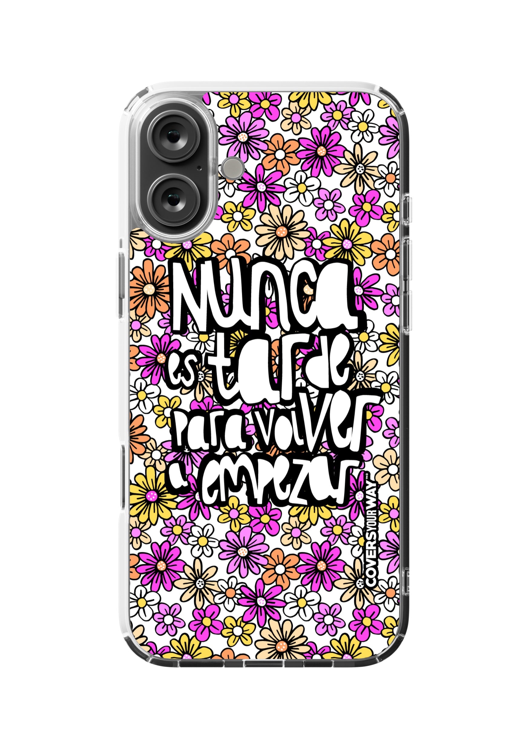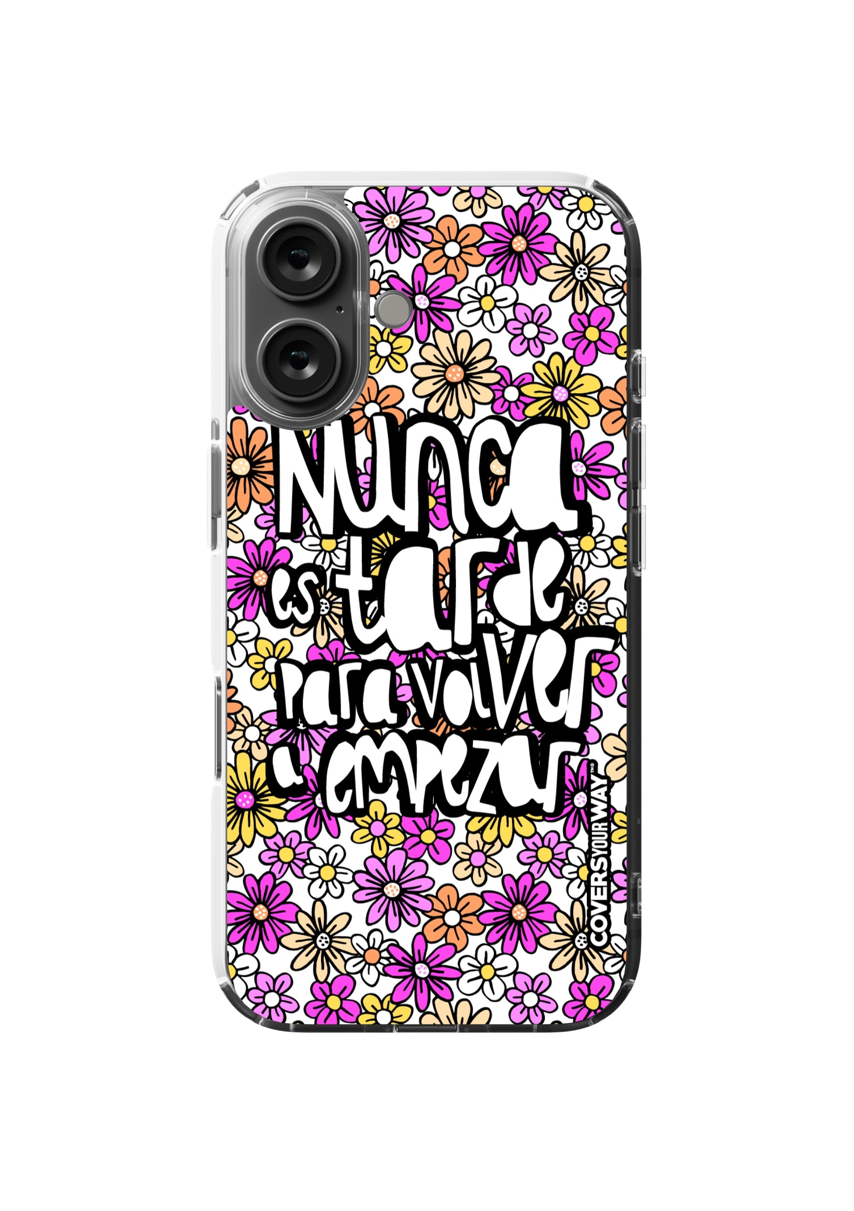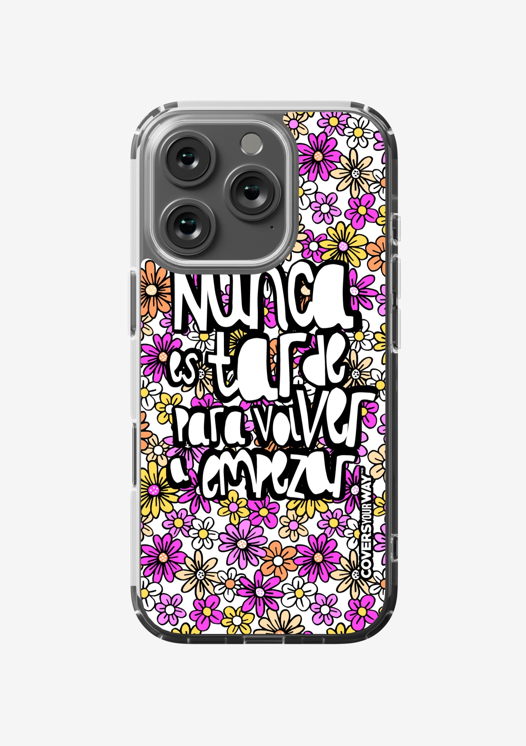 Refresh your style and energy with this durable phone case, designed with the phrase "Nunca Es Tarde Para Volver a Empezar". It protects your device from bumps and scratches while sharing a message of hope, second chances, and new beginnings.